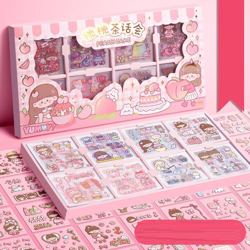 🌸 Kawaii Washi Sticker Box Set (200 PCS) – Peach Cake, Starry Galaxy & Cute Daily Life Themes