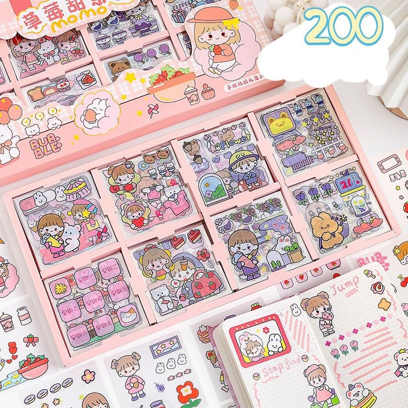 🌈 200PCS Washi Stickers per Box – A huge collection of unique designs featuring characters, food, accessories, and decorations.