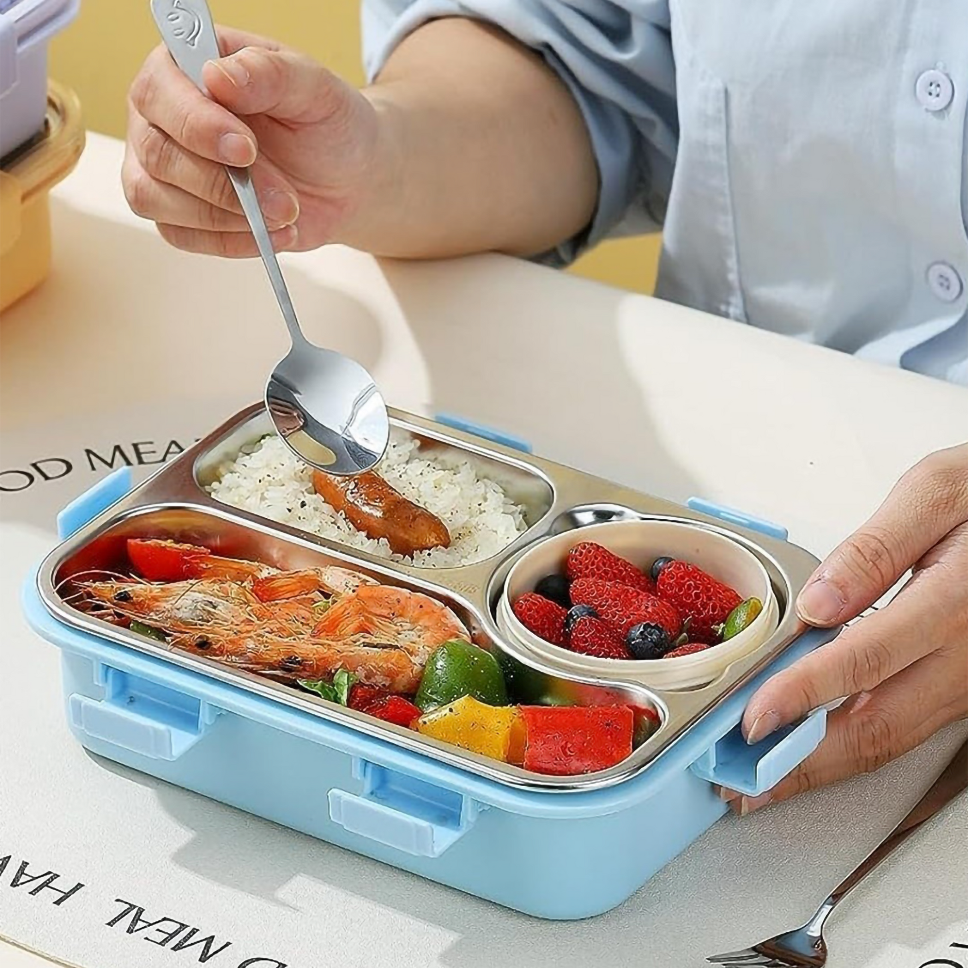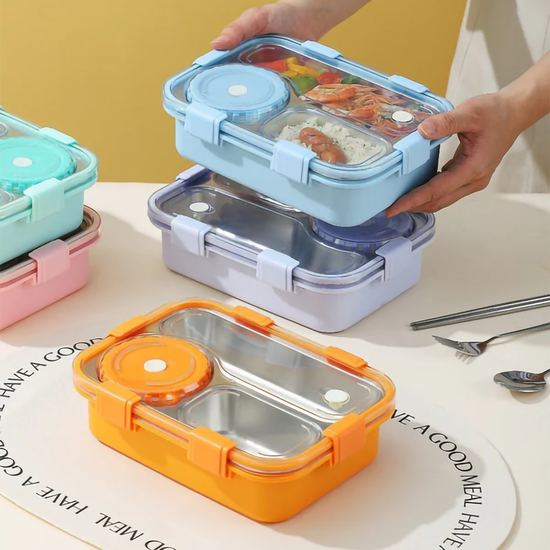 🥗 Food-Grade Stainless Steel Interior: Premium 3-compartment metal tray keeps daily meals safe, healthy, and tasting great.