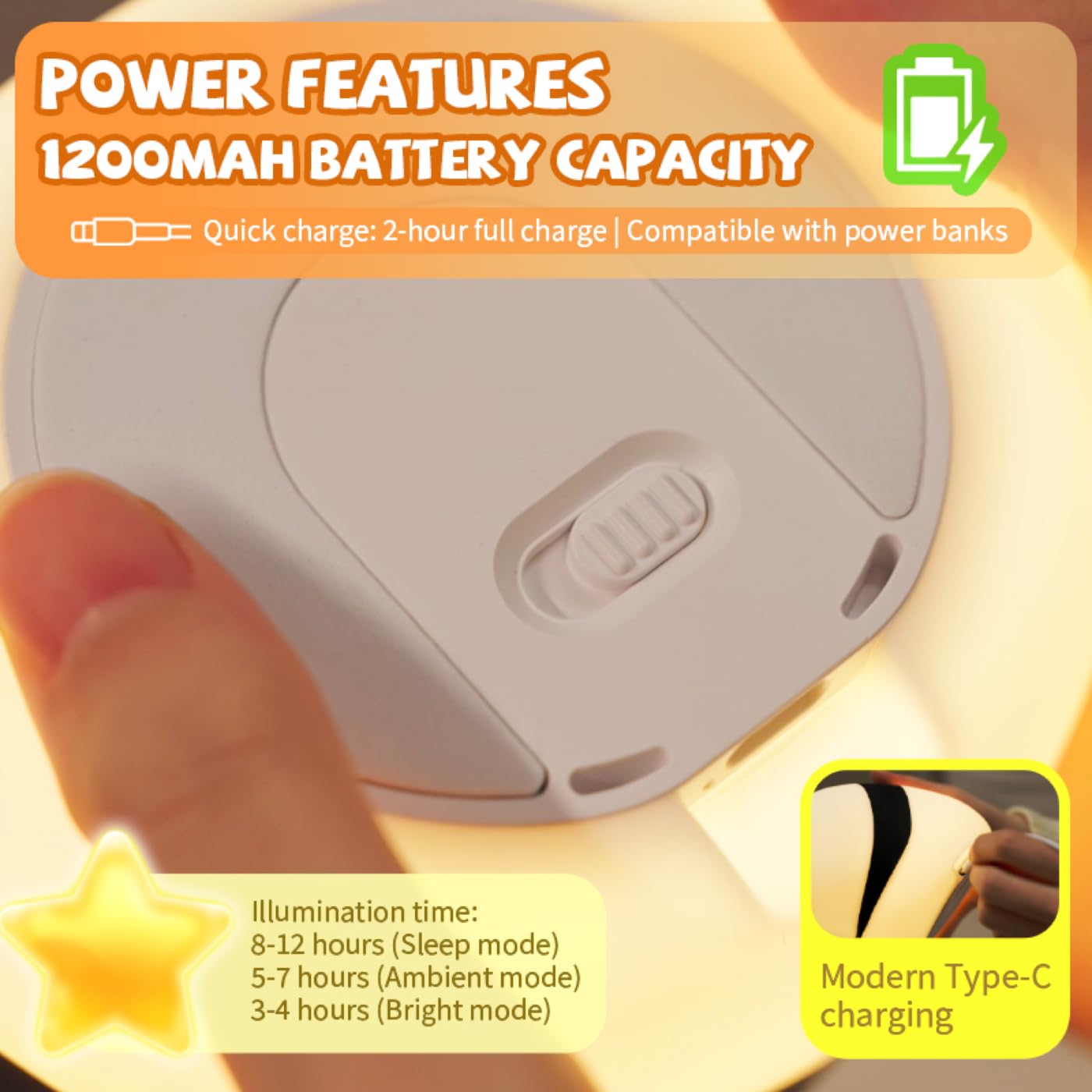 Brighten your nights with the adorable Panda Touch Lamp! Designed with soft silicone material and an intuitive tap-to-control interface, this lamp adds a warm, comforting glow to any room. With 3 adjustable brightness levels, Type-C rechargeable battery, and a 30-minute auto-shutoff timer, it’s the perfect mix of cuteness and convenience for kids and adults alike.