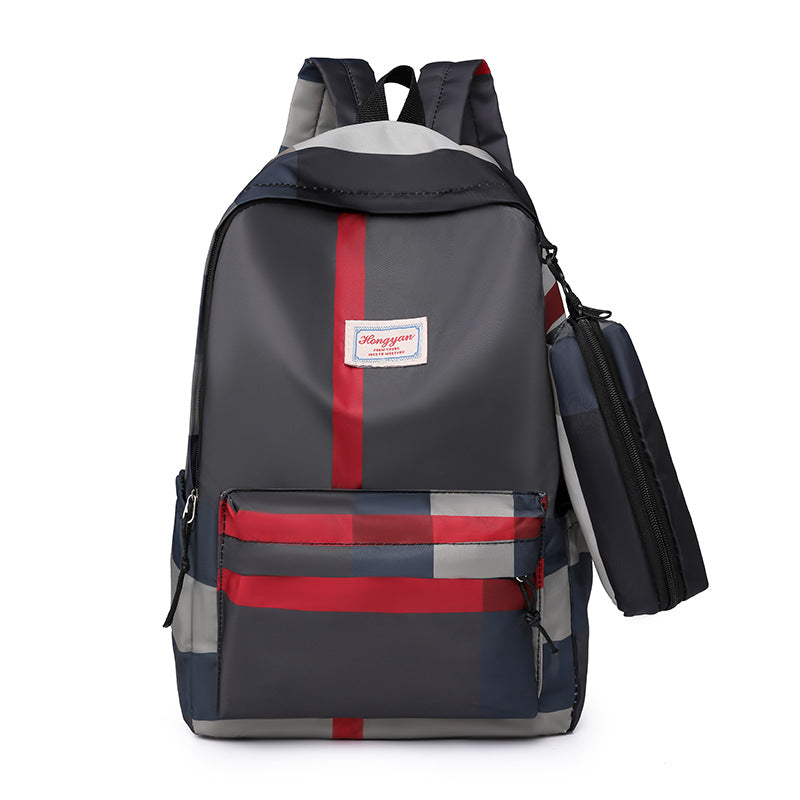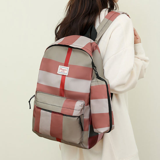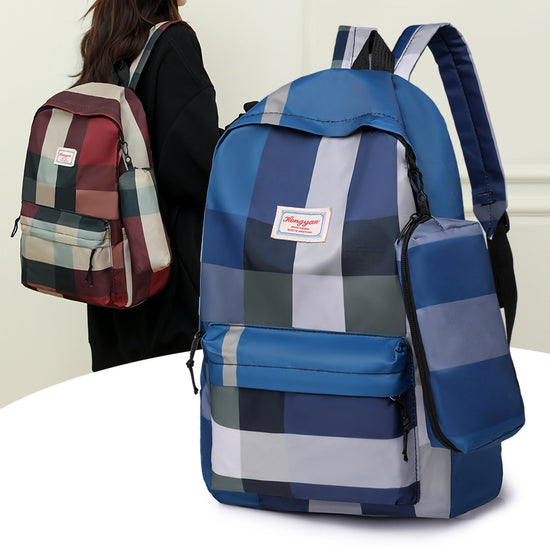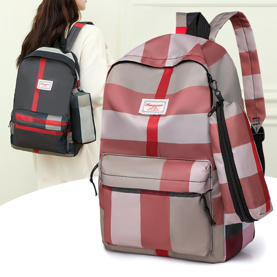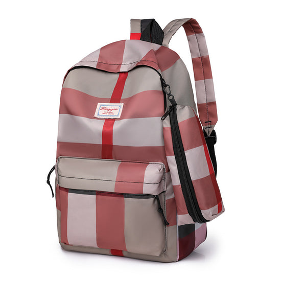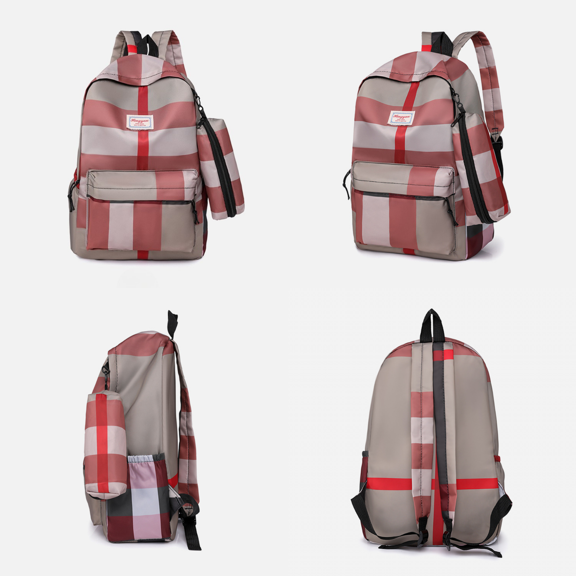 Large Capacity Casual Plaid School Bag with Detachable Pouch