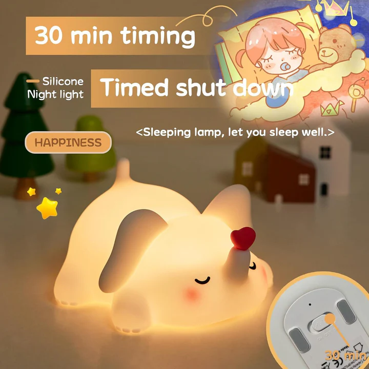 Bring warmth, comfort, and charm into your space with the Loving Elephant Silicone Night Lamp! This adorable, squishy elephant lamp emits a soft, calming glow and features three brightness levels, tap sensor control, and a rechargeable battery for convenient use. With its gentle light, timer function, and even a phone holder design, it’s both cute and practical — a perfect addition to any kid’s room or bedside table.