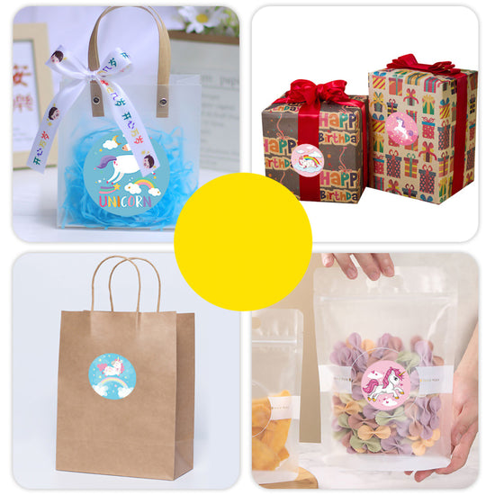 Bring a dash of fantasy and color to your crafts, gifts, and packages with our Magical Unicorn Decorative Sticker Roll! Each roll is packed with 500 round, 1-inch labels featuring beautiful, high-quality illustrations of dreaming unicorns, vibrant rainbows, and sparkling stars. Perfect for scrapbooking, sealing party favor bags, or adding a whimsical touch to small business packaging, these self-adhesive stickers are an absolute must-have for any unicorn lover.