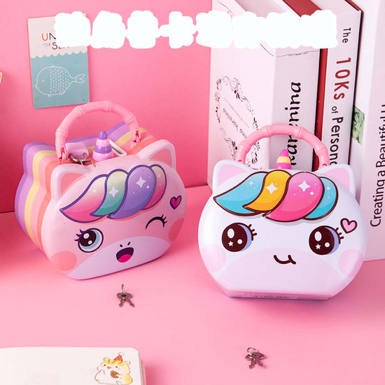 Package Includes: 1 x Unicorn Piggy Bank, 1 x Padlock, 2 x Keys