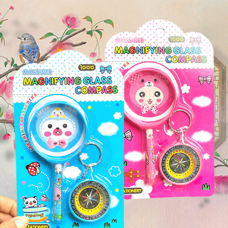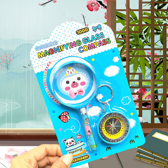 🌈 Kawaii Cartoon Magnifying Glass & Compass Set – Fun Educational Stationery for Kids