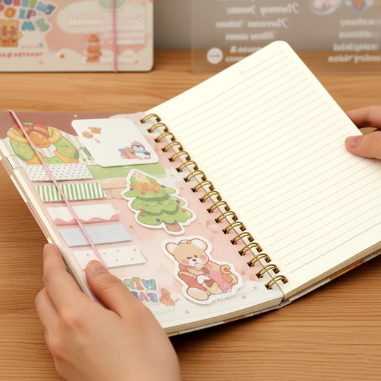 🧸 Built-In Sticky Notes – Includes assorted memo pads, tabs, and shaped stickies for easy reminders and cute decoration.