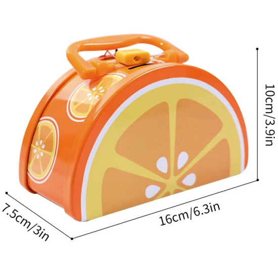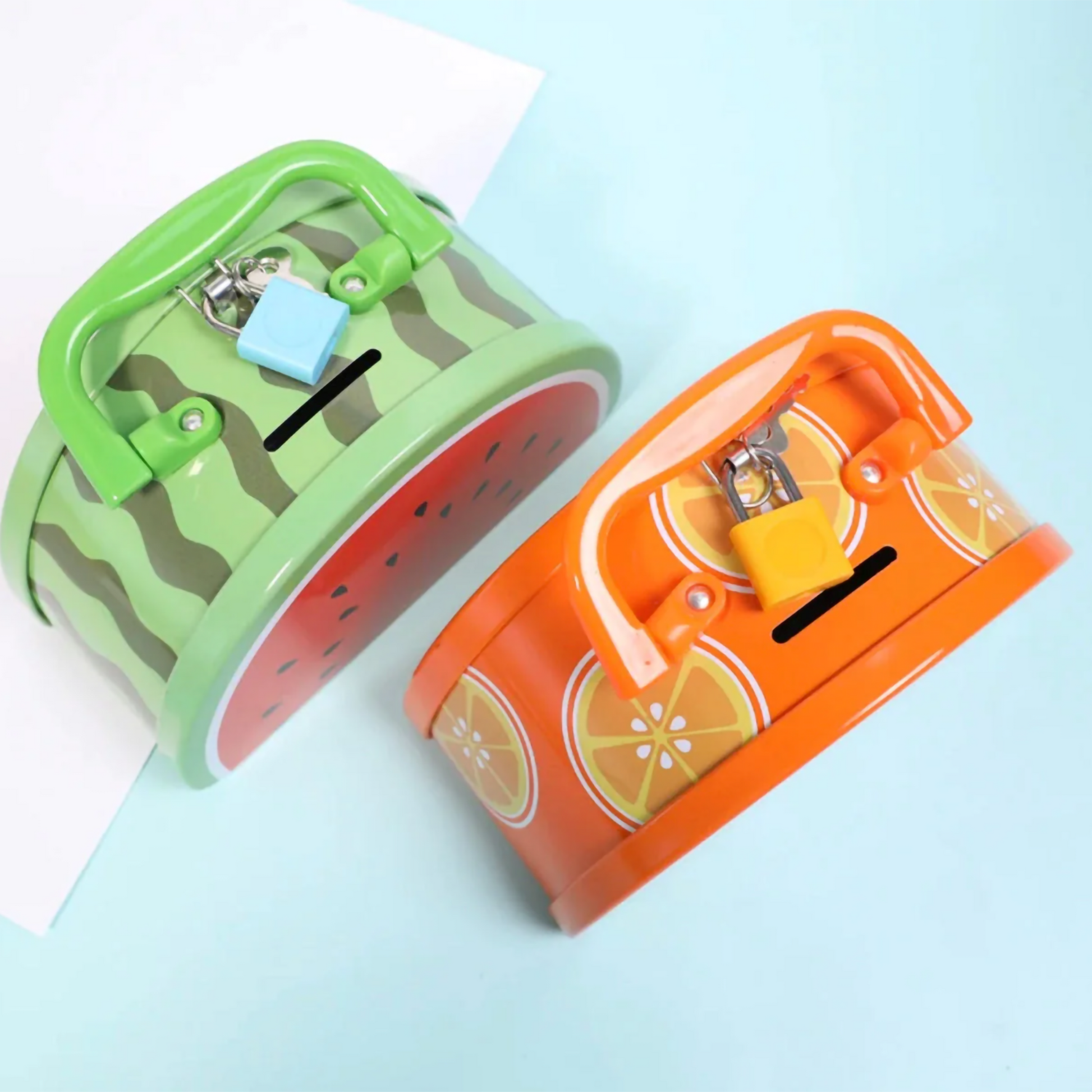 Metal Fruit Slice Coin Bank – Locking Money Box with Handle