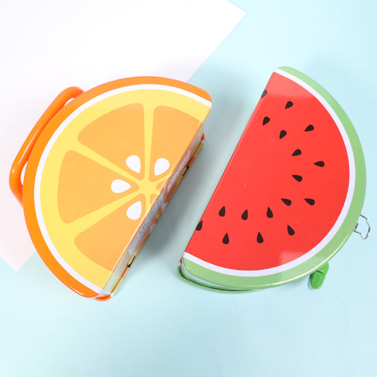 Teach kids the value of saving with these vibrant Metal Fruit Slice Coin Banks! Shaped like fresh slices of Watermelon, Orange, Kiwi, and Lemon, these sturdy metal money boxes are as fun as they are functional. Featuring a secure padlock with keys and a convenient carry handle, they are the perfect safe spot for little ones to stash their pocket money and treasures.