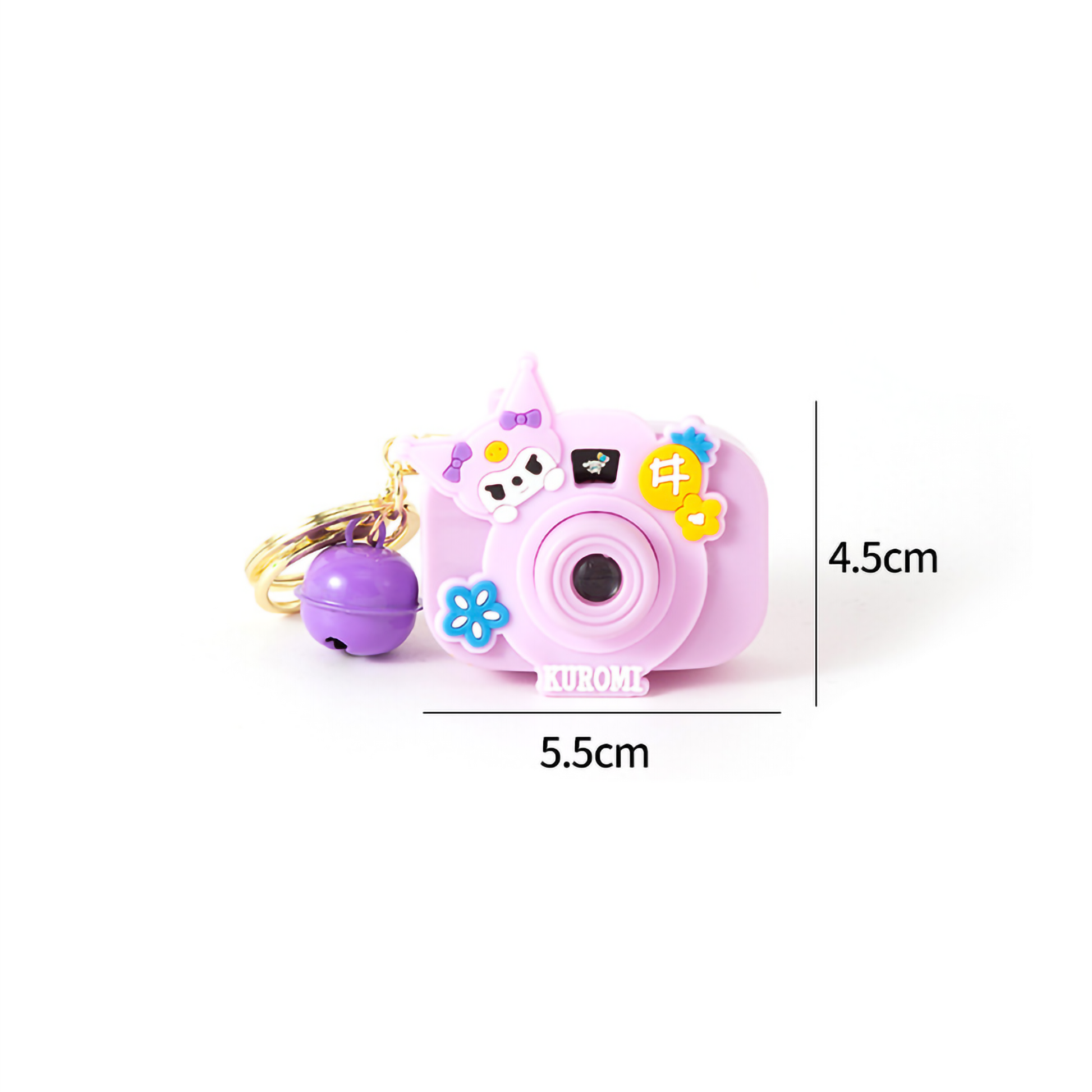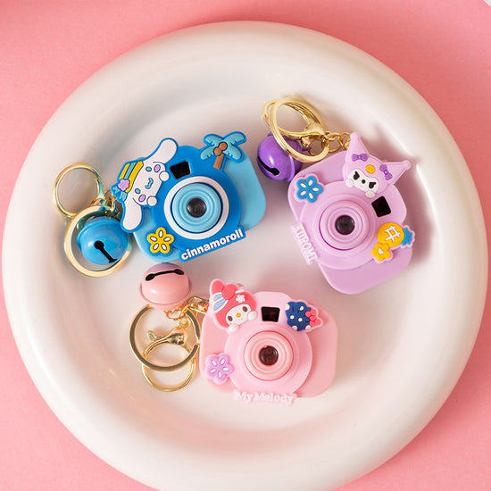 Capture the magic with this adorable Mini Projection Camera Keychain! Shaped like a tiny DSLR camera, this trendy accessory features your favorite kawaii characters and holds a fun secret—press the shutter button to project a cute, lighted image onto any surface! Finished with a matching jingle bell and a gold clasp, it’s the perfect blend of a fidget toy and a stylish charm to brighten up backpacks and keys.