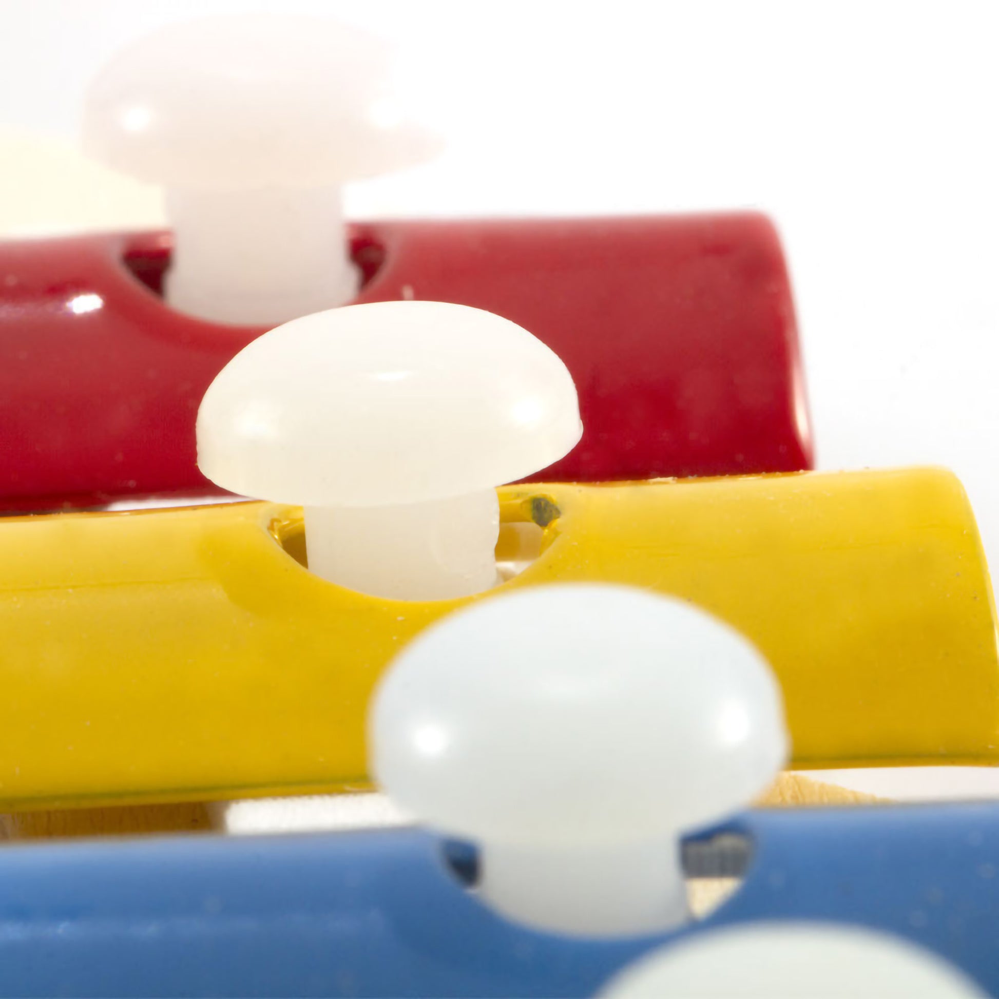 🎶 5 Colorful Keys: Features five vibrant metal keys in Red, Yellow, Blue, Green, and Purple, creating a mini rainbow scale for simple melodies.
