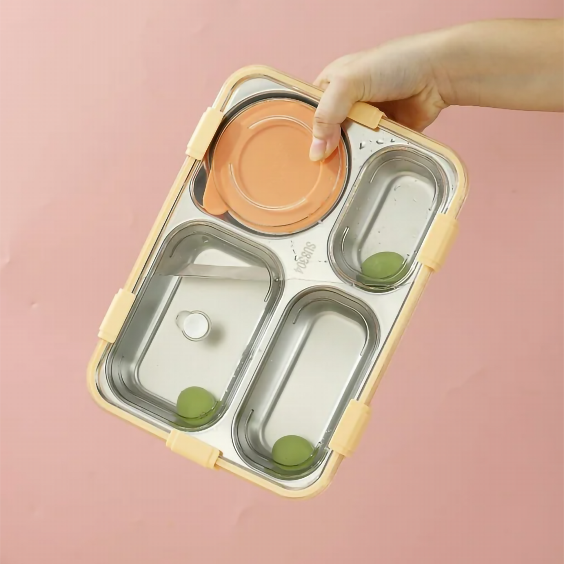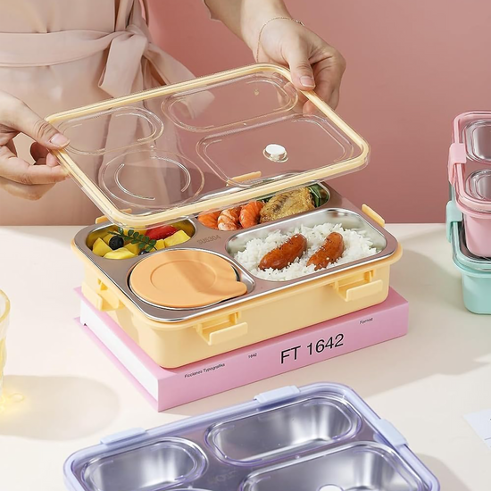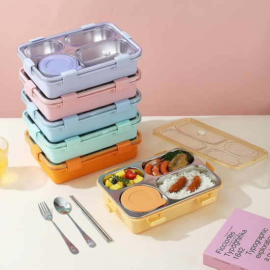 🥗 Food-Grade Stainless Steel Interior: Premium SUS304 4-compartment tray keeps meals neatly separated, fresh, and healthy.