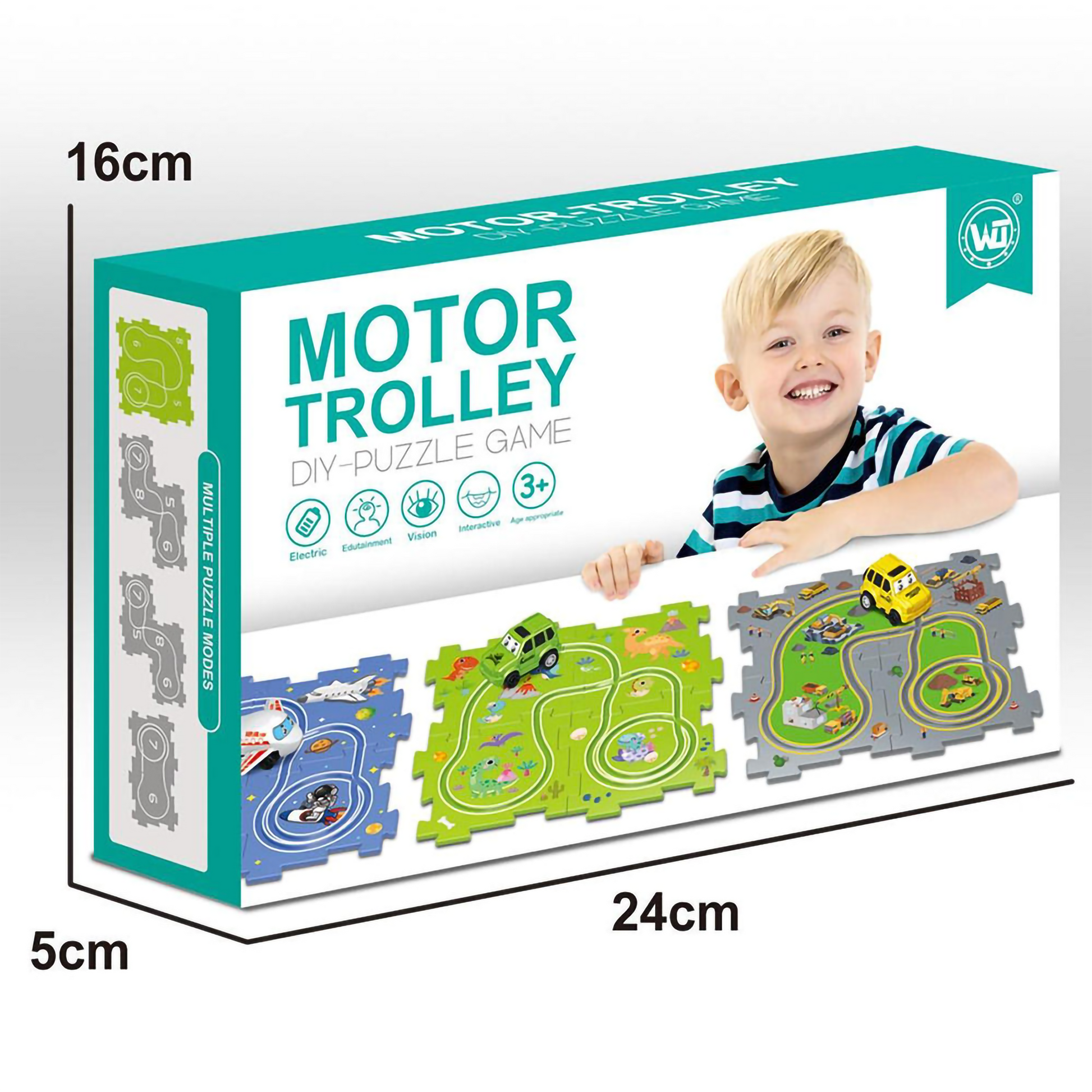🧠 Edutainment Value: Branded as a "Motor Trolley DIY-Puzzle Game," it promotes vision, interactive play, and fine motor skills as kids fit the jigsaw pieces together.