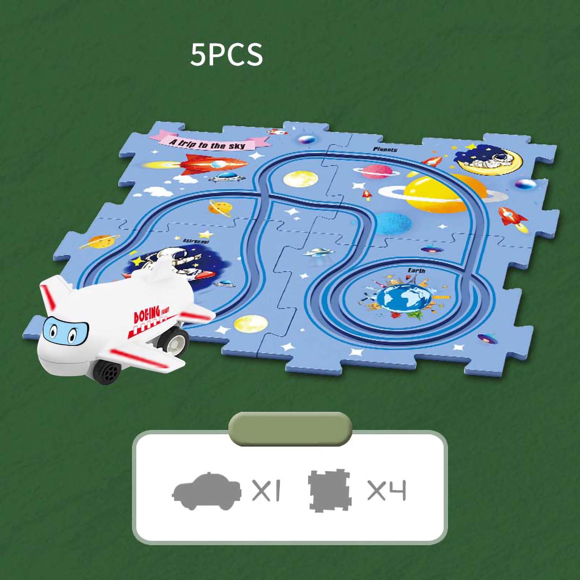 🧩 5-Piece Starter Set: Comes with 4 Track Puzzle Pieces and 1 Vehicle, making it a perfect beginner set for younger children to assemble easily.