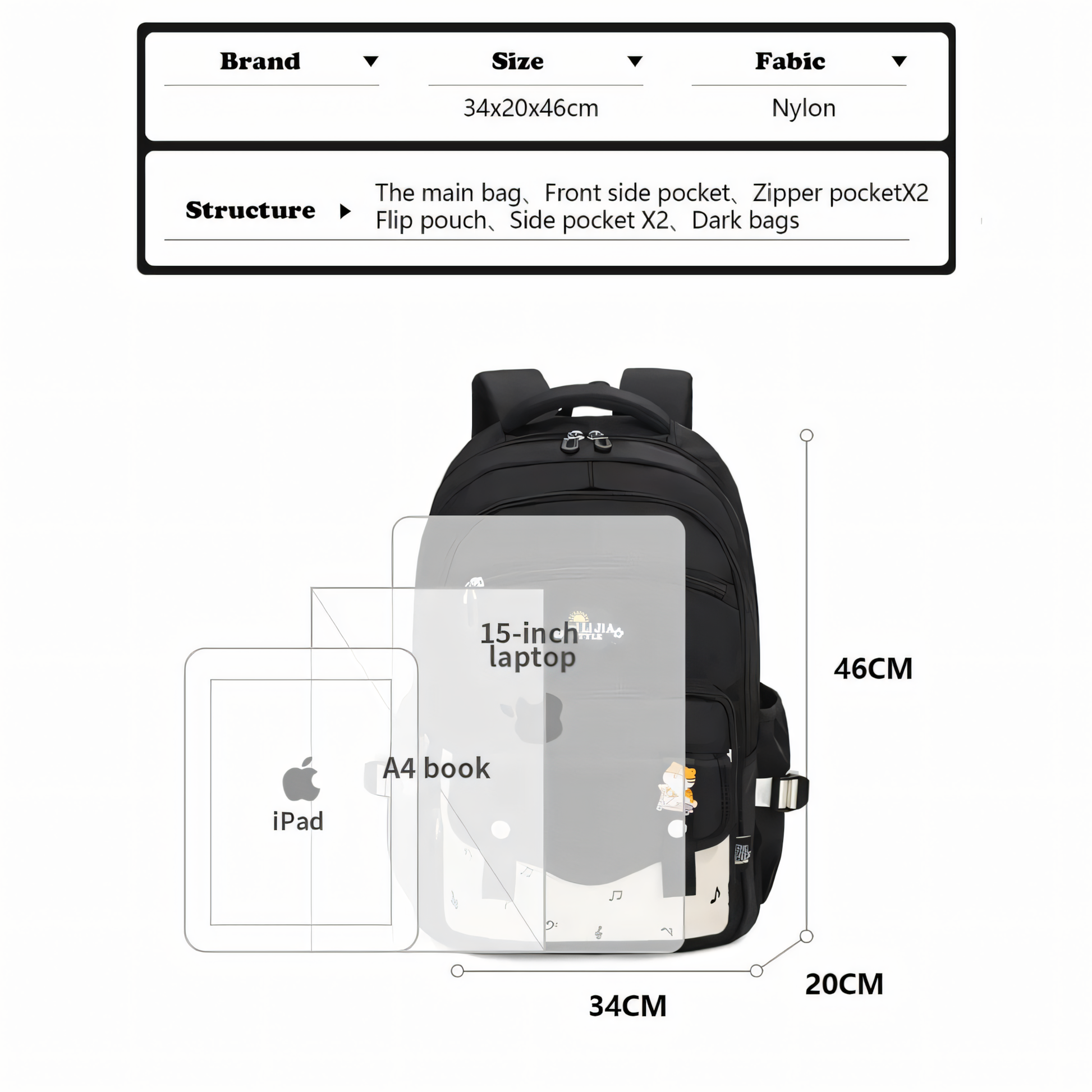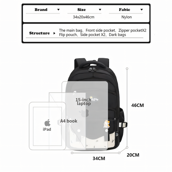 🎒 Spacious Main Compartment: Generous capacity that easily fits a 15-inch laptop, A4 books, and an iPad.