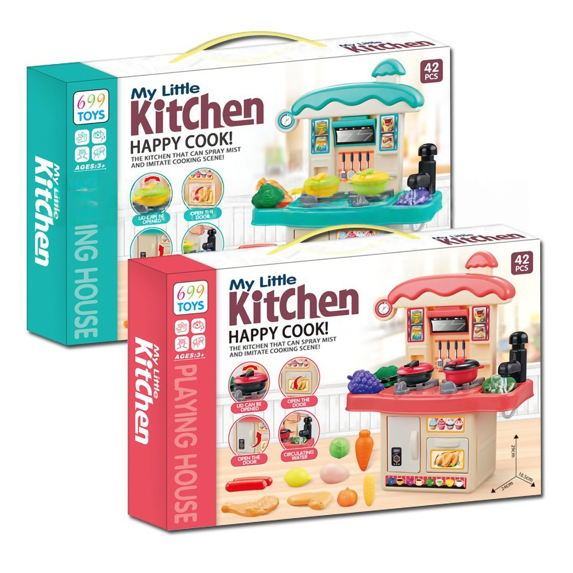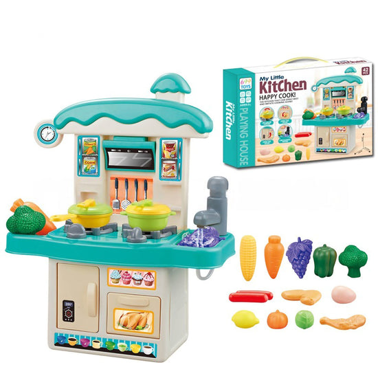 Create a magical cooking experience anywhere with the "My Little Kitchen" Happy Cook Playset! This compact, tabletop kitchen is packed with realistic features, including a stove that sprays safe water mist to simulate cooking steam and a working faucet with a water circulation system. With 42 pieces of accessories ranging from pots and pans to a variety of play foods like chicken, vegetables, and eggs, this DIY set offers endless role-play fun. Available in adorable Pink and Teal colors, it features an openable oven door and organized storage hooks, making it a perfect gift for little chefs.