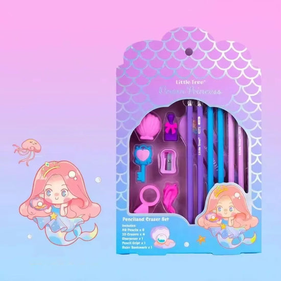 Dive into creativity with the Little Tree Ocean Princess Pencil & Eraser Set (13-in-1) 🌊✨. Inspired by the magical world under the sea, this enchanting stationery kit brings mermaid vibes and pastel beauty to every writing moment. With adorable ocean-themed accessories, soft hues, and practical stationery tools, it’s the perfect combination of charm and functionality — ideal for school, drawing, and gifting!