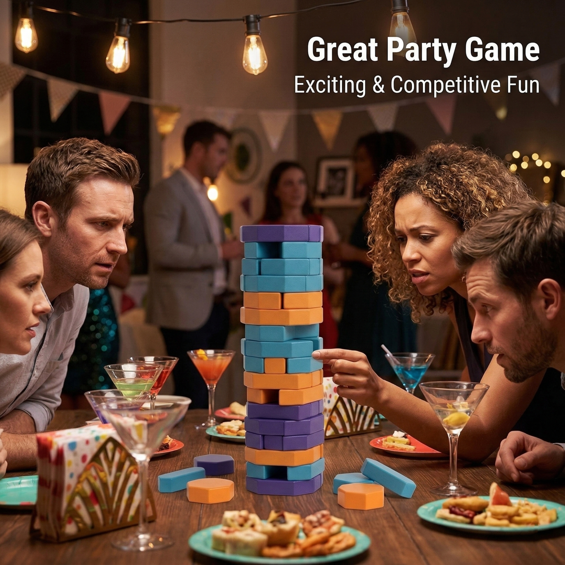 🔄 Versatile Stacking: Pull a block and place it flat or upright on top to create a taller, more precarious tower.