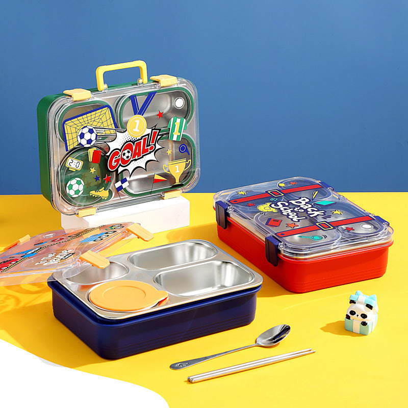 Organize Your Meals with Stainless Steel 4-Grid Lunch Box | 800ml + 150ml