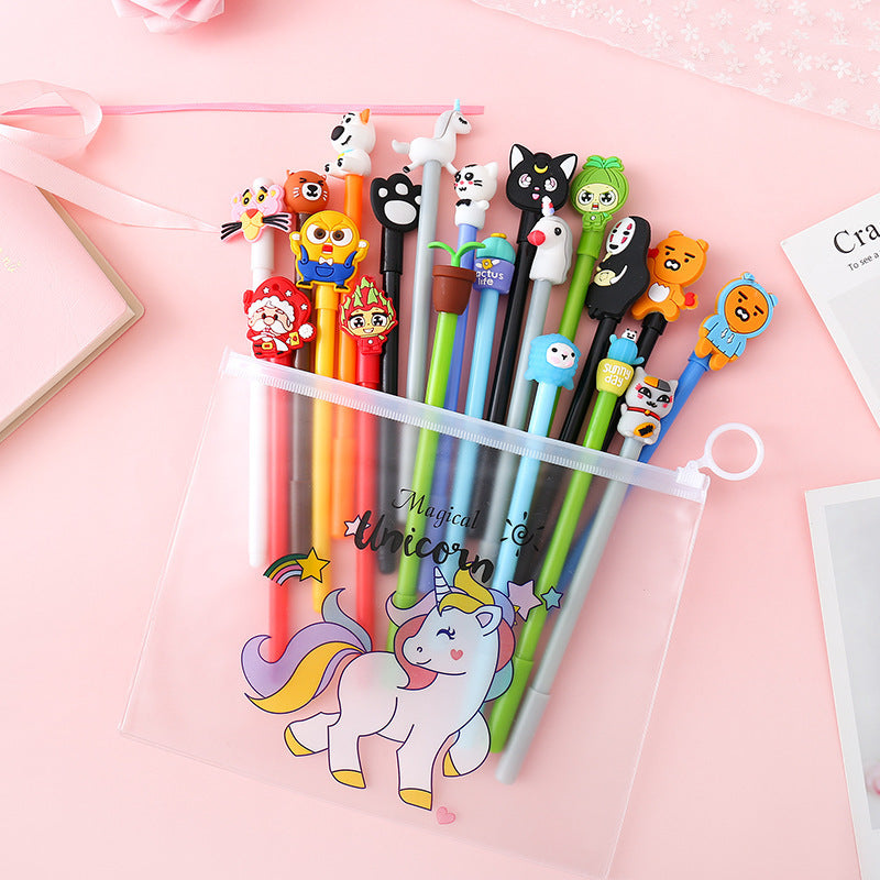 10 Assorted Cartoon Gel Pen with Unicorn Transparent Pouch