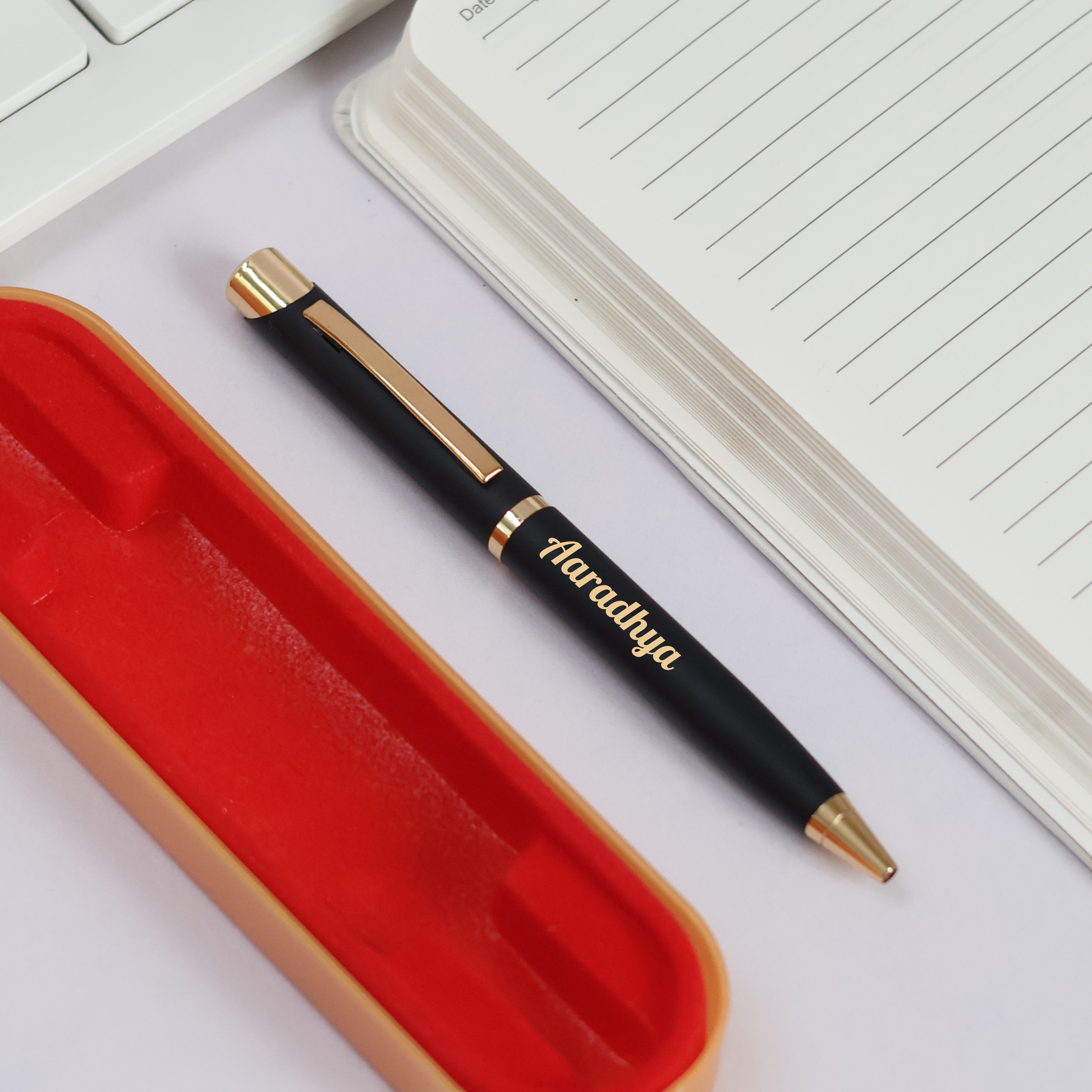 Upgrade your corporate gifting with this Personalized Glossy Black & Gold Pen, a perfect combination of style, luxury, and smooth writing performance. Designed for executives, professionals, and business associates, this pen features a sleek glossy black body with elegant gold accents, making it an excellent choice for corporate giveaways, employee rewards, and premium branding.