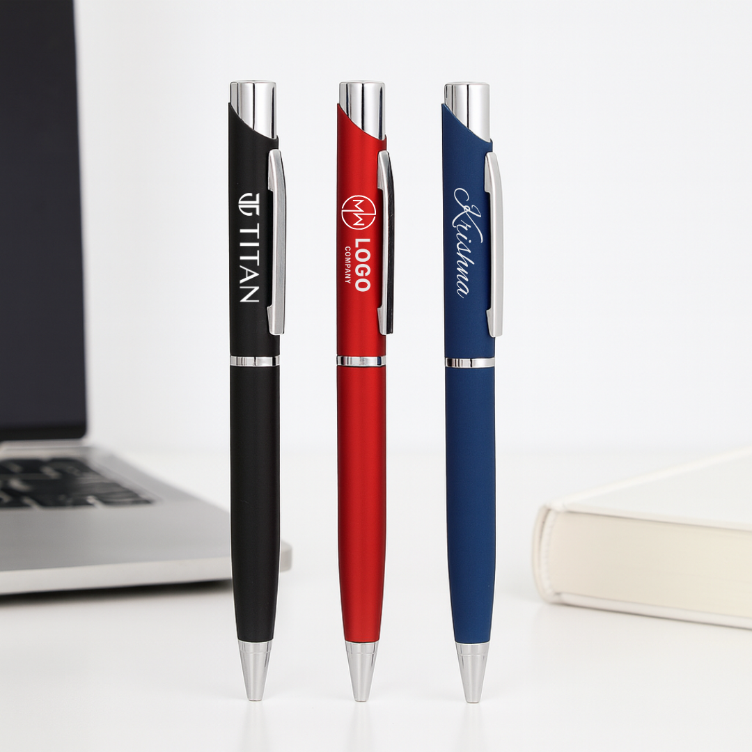Elevate your gifting game with the Personalized Matte Black & Silver Ball Pen, a perfect blend of elegance and functionality. Designed for corporate gifting, business branding, and personal use, this high-quality pen features a sleek matte black finish with refined silver accents, making it a timeless choice for professionals and individuals alike.