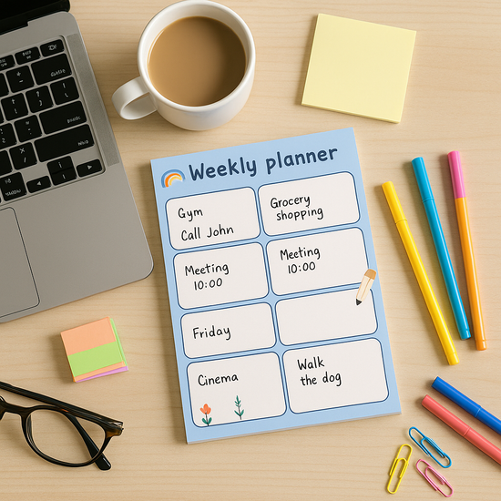 Make every week count with the Plan Your Week - Weekly Planner Notepad (A5 Size). Whether you're a student, working professional, or a multitasking parent, this 60-sheet planner helps you stay on track, organize tasks, and boost productivity — all while looking stylish on your desk!