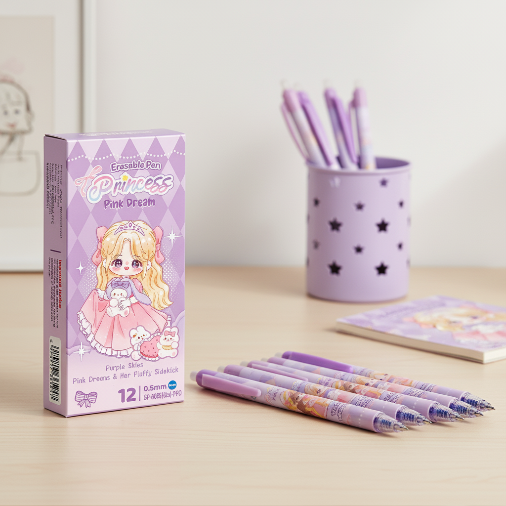 👑💜 Step into a world of charm with the Princess Pink Dream Erasable Pen! Featuring an adorable princess design and smooth erasable ink, this 0.5mm pen makes writing magical. Perfect for kids, students, and stationery lovers, it combines cuteness with practical function for everyday notes, doodles, and journaling.