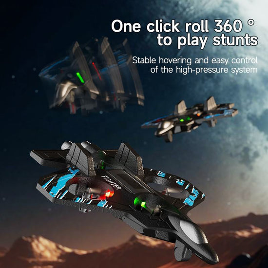 RC Fighter Jet Drone – 2.4G Remote Control Quadcopter Plane with Stunts & Lights