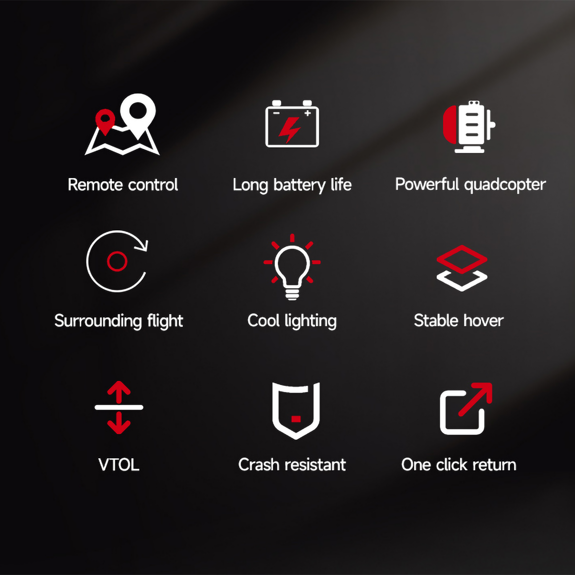 🔄 Epic Stunts: Capable of performing impressive aerial tricks like $360^\circ$ rolls and surrounding flight circles with just a press of a button.