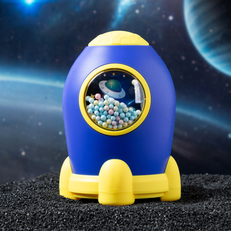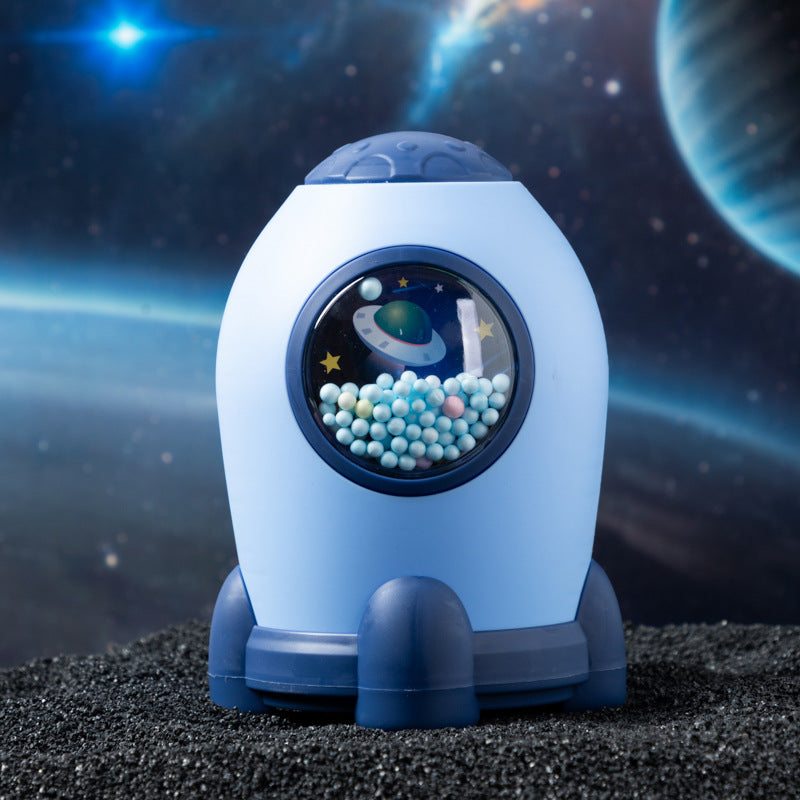 Designed like a colorful rocket ship blasting into space, this cute piggy bank makes saving fun and imaginative. Each rocket features a transparent “window” with floating planet designs and pastel beads, adding a playful galaxy touch to any desk or shelf.