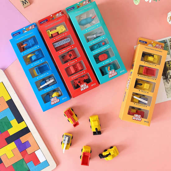 1 x Transportation Vehicle Eraser Set (Set of 5): 🚗 detailed 3D erasers shaped like cars and trucks to brighten up any pencil case.