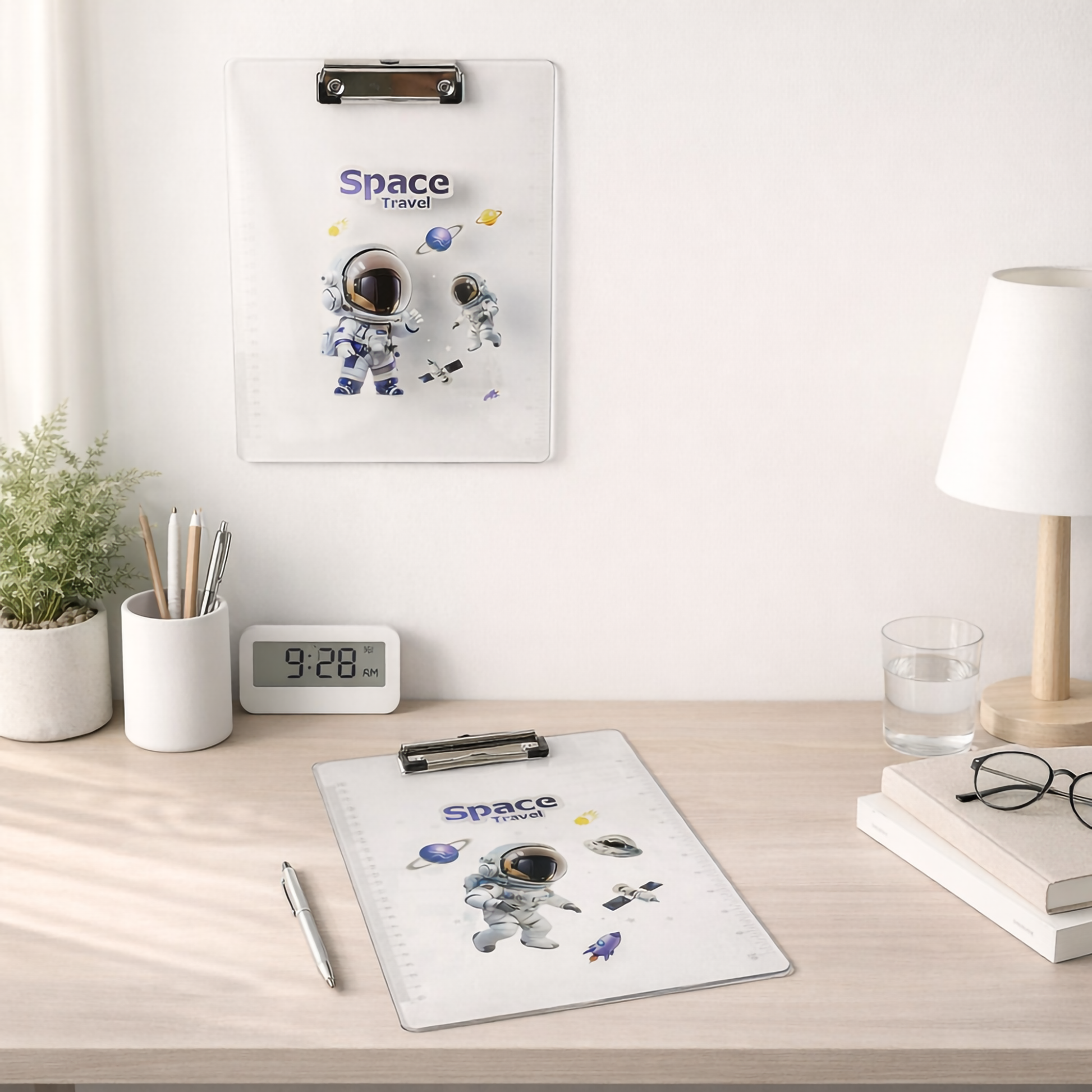 Blast off into academic success with this stellar Space Travel Exam Pad! Designed to make writing fun, this transparent clipboard features adorable astronaut graphics that inspire creativity and adventure. Sturdy, functional, and undeniably cool, it’s the perfect desk companion for every young explorer tackling homework, art projects, or school exams.