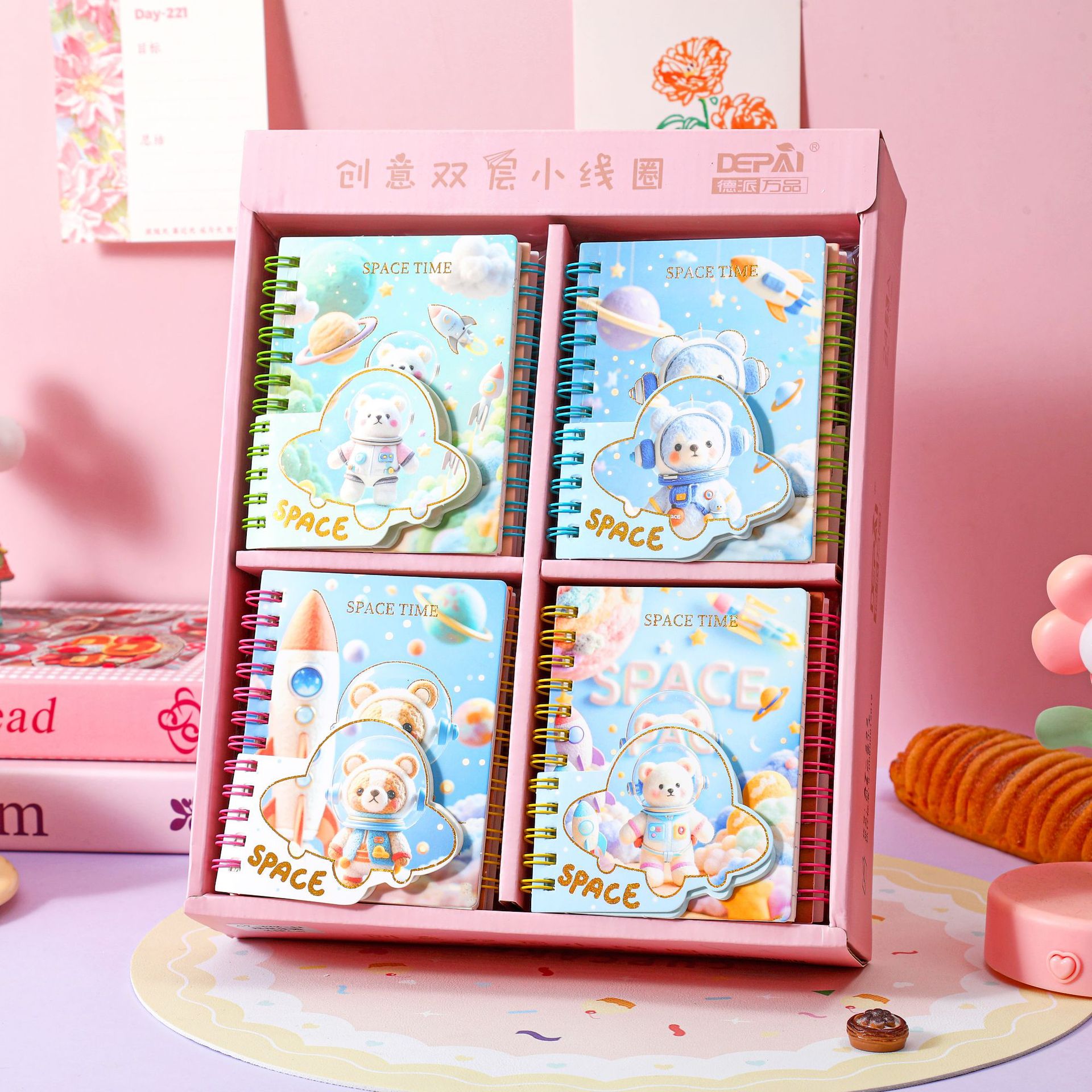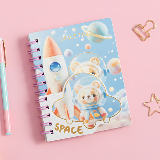🚀 Space-Themed Spiral Notebook – Cute Cartoon Bear Design Diary for Kids