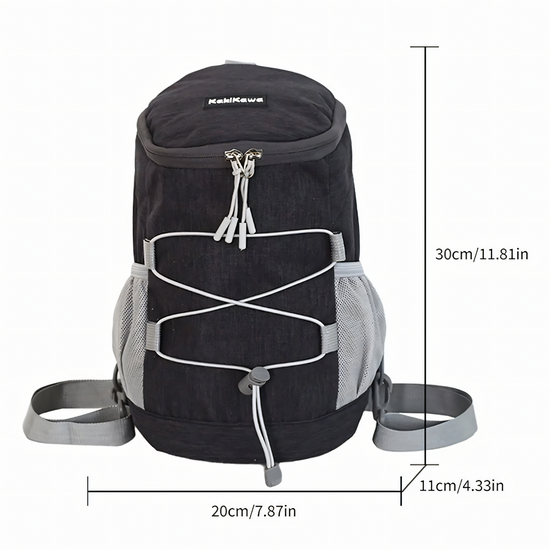 Travel light and stay stylish with this Sport Leisure Woods (SLW) Mini Backpack! Designed for the active lifestyle, this compact 30cm rucksack is the perfect companion for day trips, gym sessions, or casual outings. Made from high-quality water-repellent nylon, it protects your essentials from light rain while remaining incredibly lightweight (only 0.21kg!). The sporty design features a trendy front bungee cord system and a spacious main compartment that fits your phone, wallet, water bottle, and small notebooks.