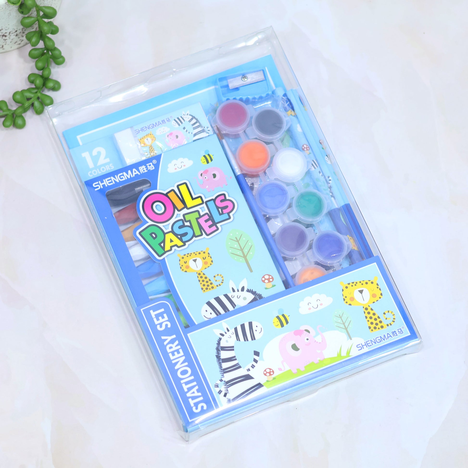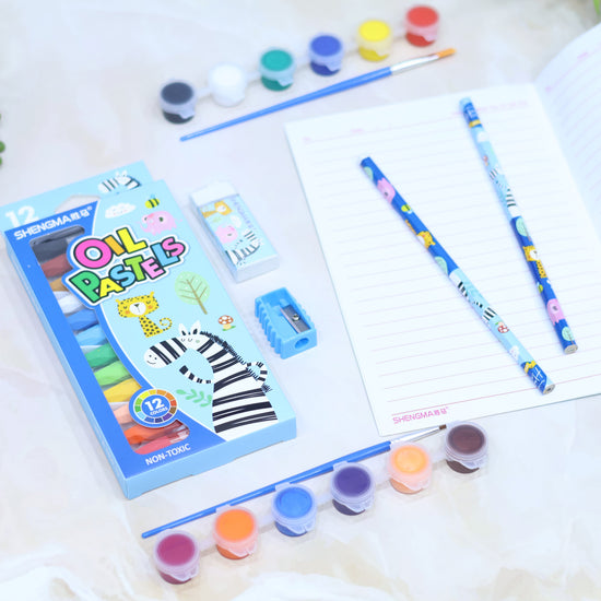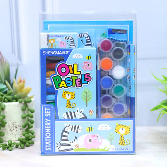 Inspire young artists with this adorable and colorful Zoo Theme Stationery Drawing Set (Pack of 7). Packed with all the essentials for drawing, coloring, and painting, it's the perfect companion for every child’s creative journey — whether at home or school!