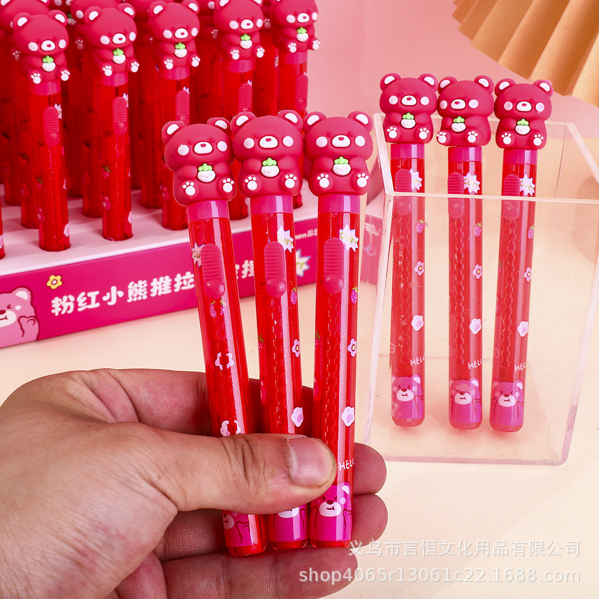 Say goodbye to messy erasures and hello to fun and creativity with the Strawberry Bear Push Pull Sliding Eraser!