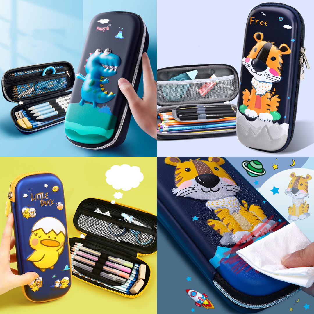 Make school time extra fun with our Stylish 3D Cartoon EVA Pencil Case! Featuring adorable Dino, Chick, and Lion designs, this durable and lightweight case is perfect for keeping stationery safe and organized whether at school, home, or on the go. Its vibrant 3D look and sturdy build make it both a functional and eye-catching companion for kids.