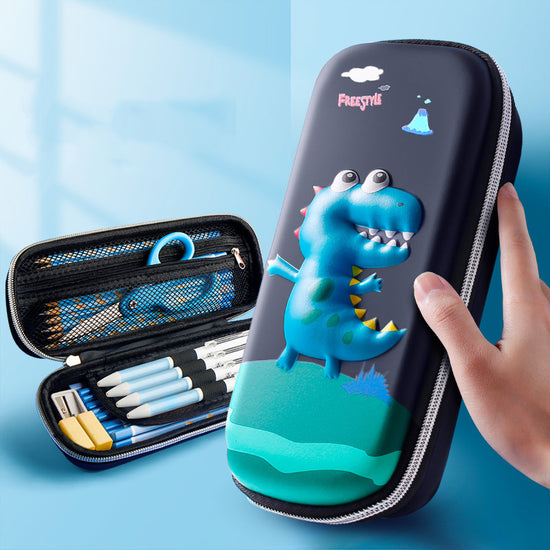 Stylish 3D Cartoon EVA Pencil Case – Dino, Chick & Lion Theme