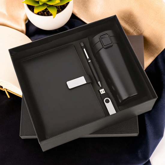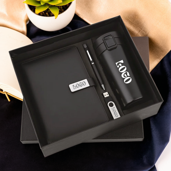 Looking for premium corporate gifts that make a lasting impression? The Success Kit 4-in-1 Executive Gift Set is the ultimate choice for professionals. Thoughtfully curated with a premium diary, sleek vacuum mug, 32GB USB pendrive, and an elegant metal pen, this set blends style, functionality, and practicality—making it the perfect gift for clients, employees, and business associates.