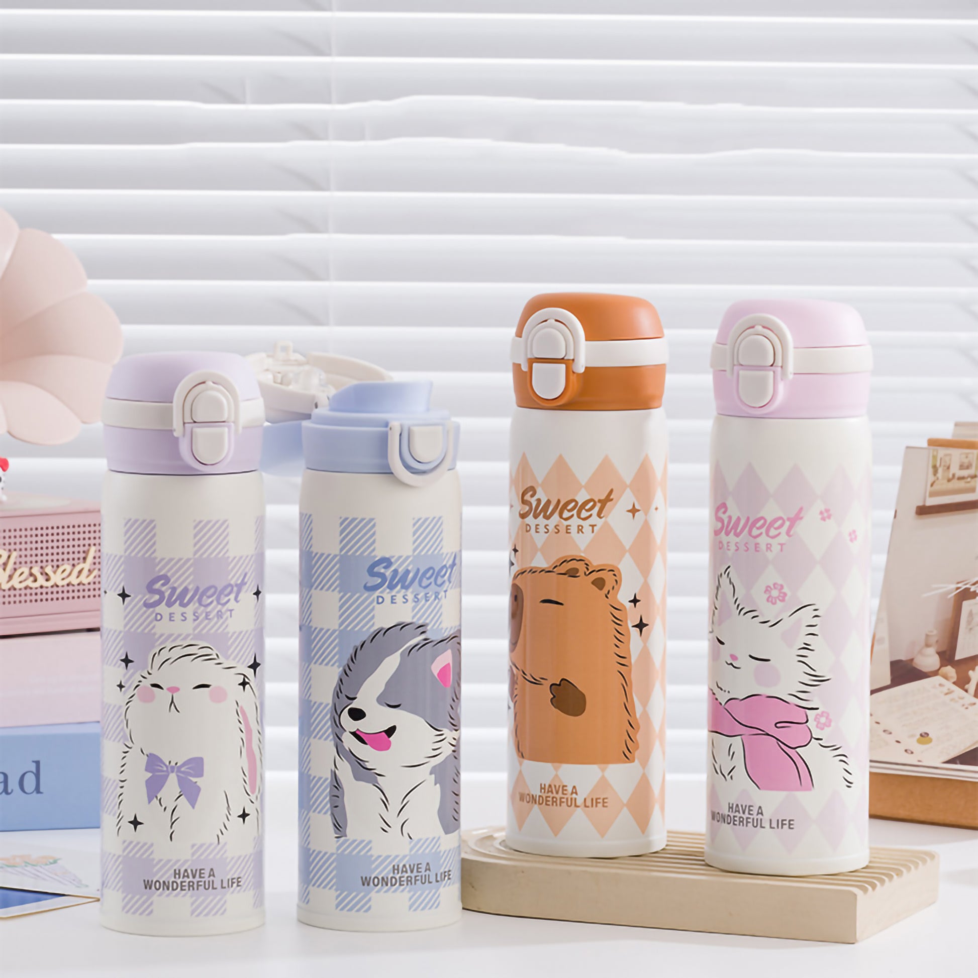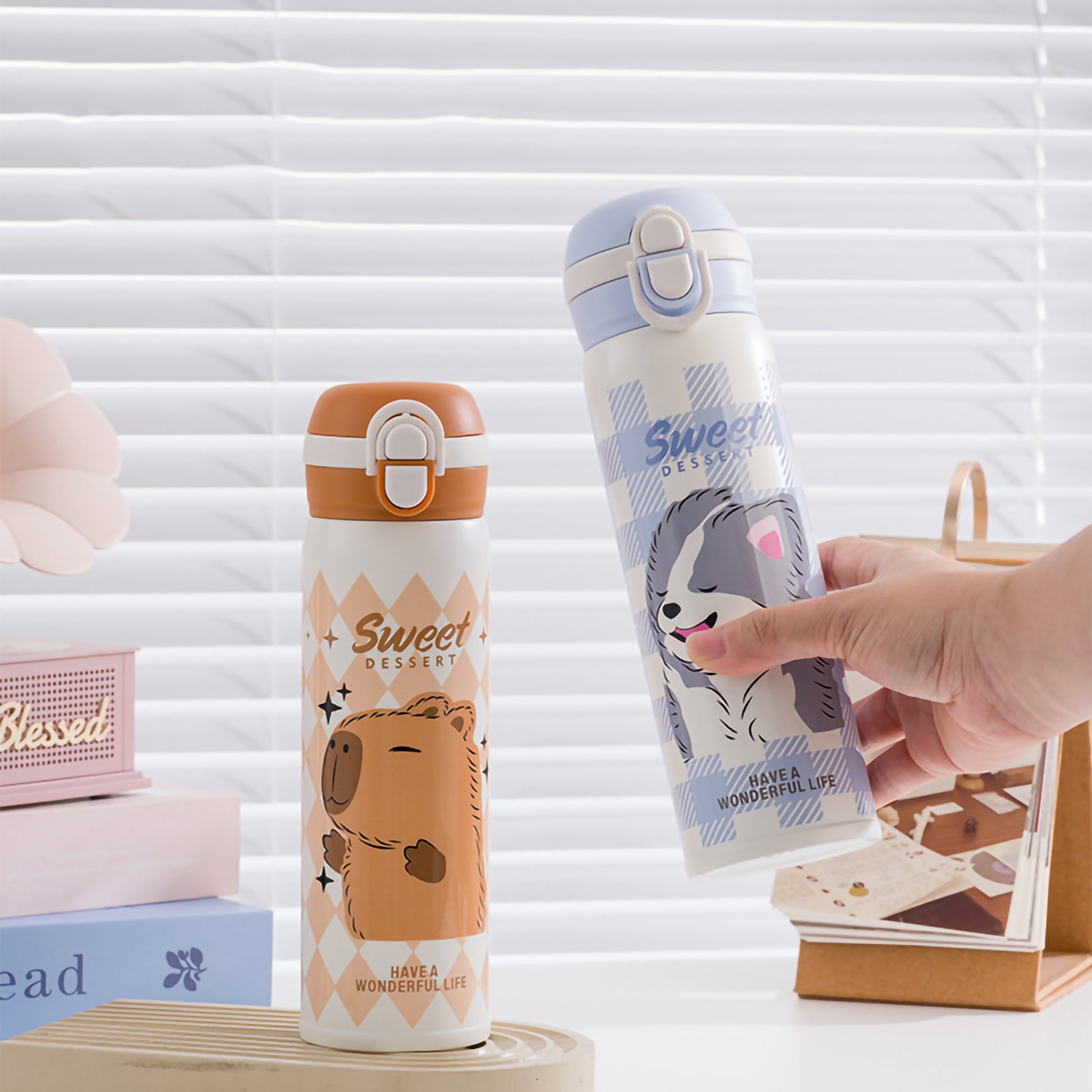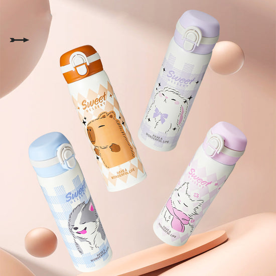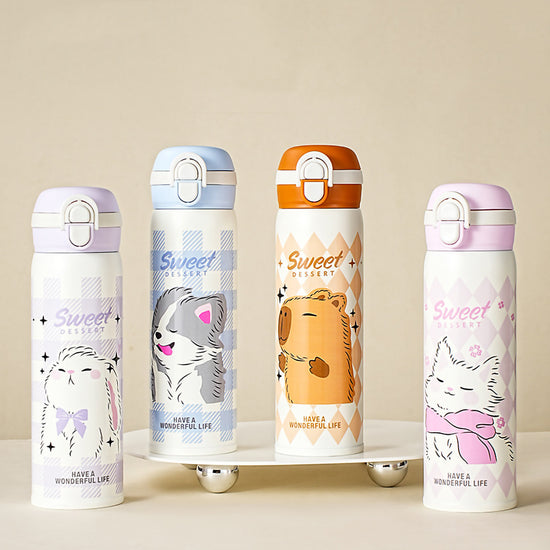 Make hydration delightful with our "Sweet Dessert" 500ml Vacuum Insulated Water Bottle! Crafted from premium SUS316L stainless steel, this double-wall thermos keeps beverages at the perfect temperature for hours. Featuring a clever 2-in-1 lid with both a sipper and a direct drinking spout, alongside adorable pastel animal prints like trendy capybaras and bunnies, it is the perfect stylish companion for school and everyday outings.