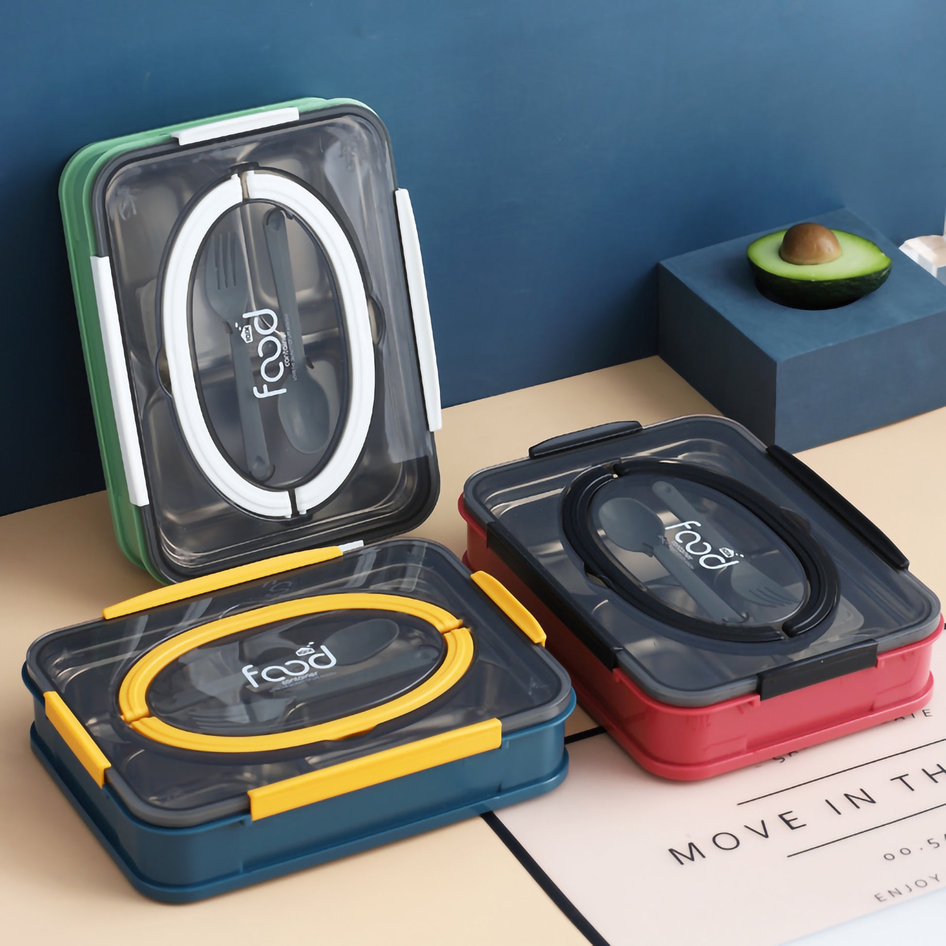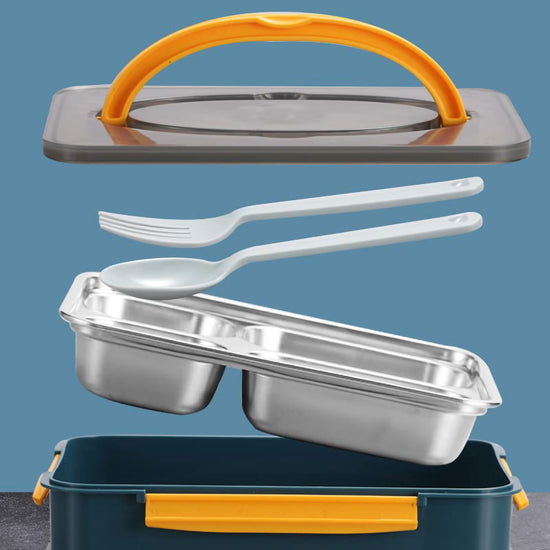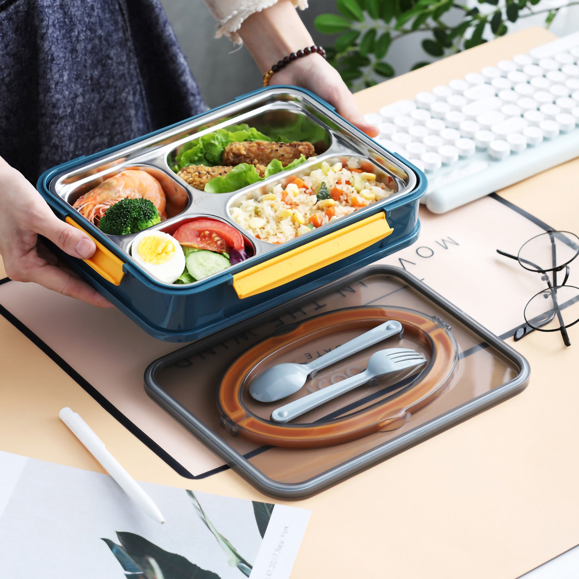 🥗 Food-Grade Stainless Steel Interior: Premium 4-compartment tray keeps meals neatly separated, fresh, and perfectly portioned.