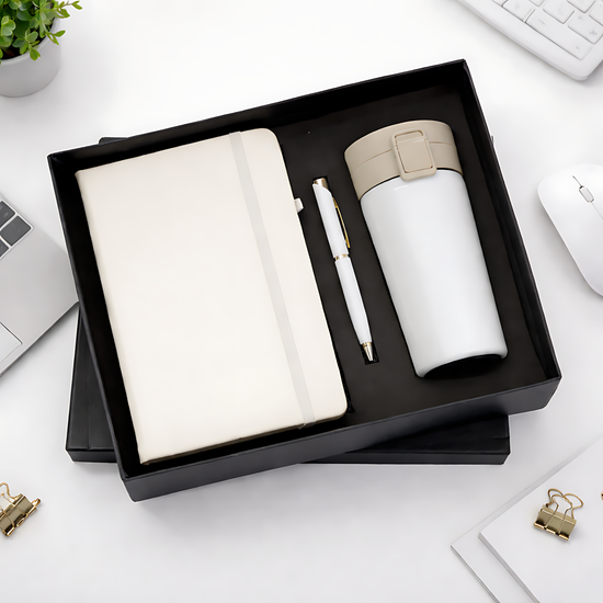 This versatile 3-in-1 gift set is designed for daily utility, featuring a travel tumbler, a hardcover diary, and a matching pen. Packaged in a professional box, it serves as an excellent return gift for corporate events, team offsites, or personal gatherings. The set allows for easy personalization, making it a memorable choice for any occasion.