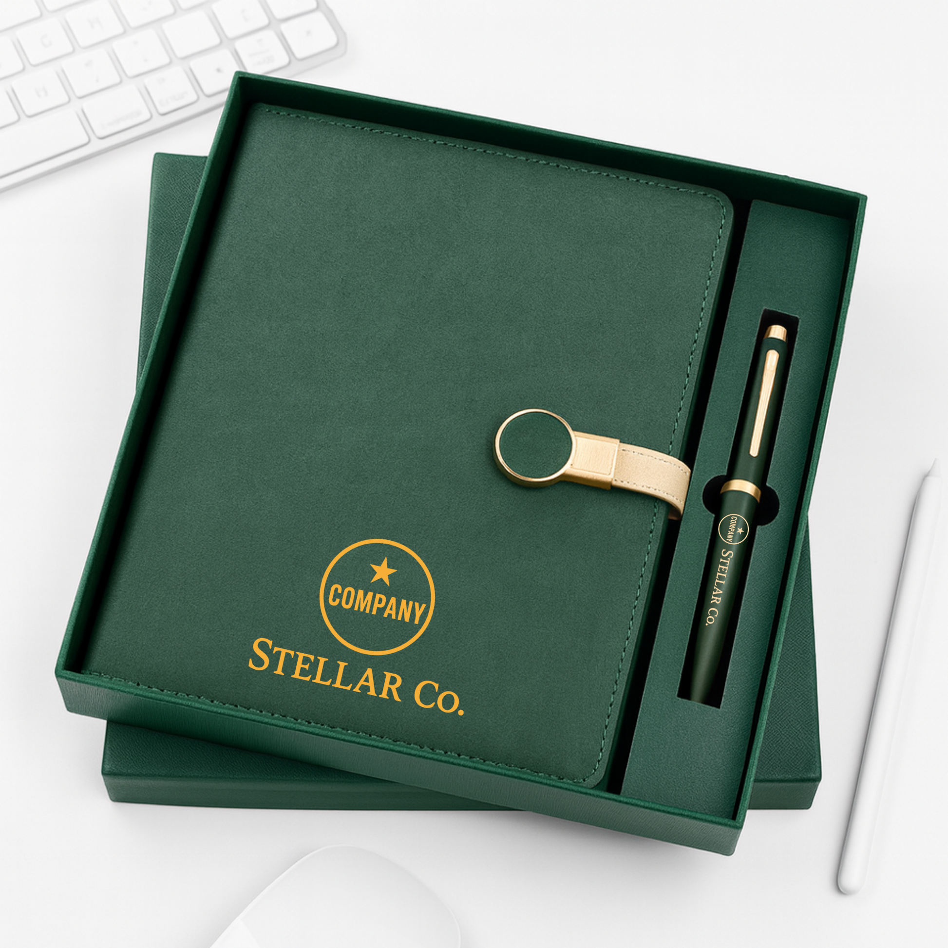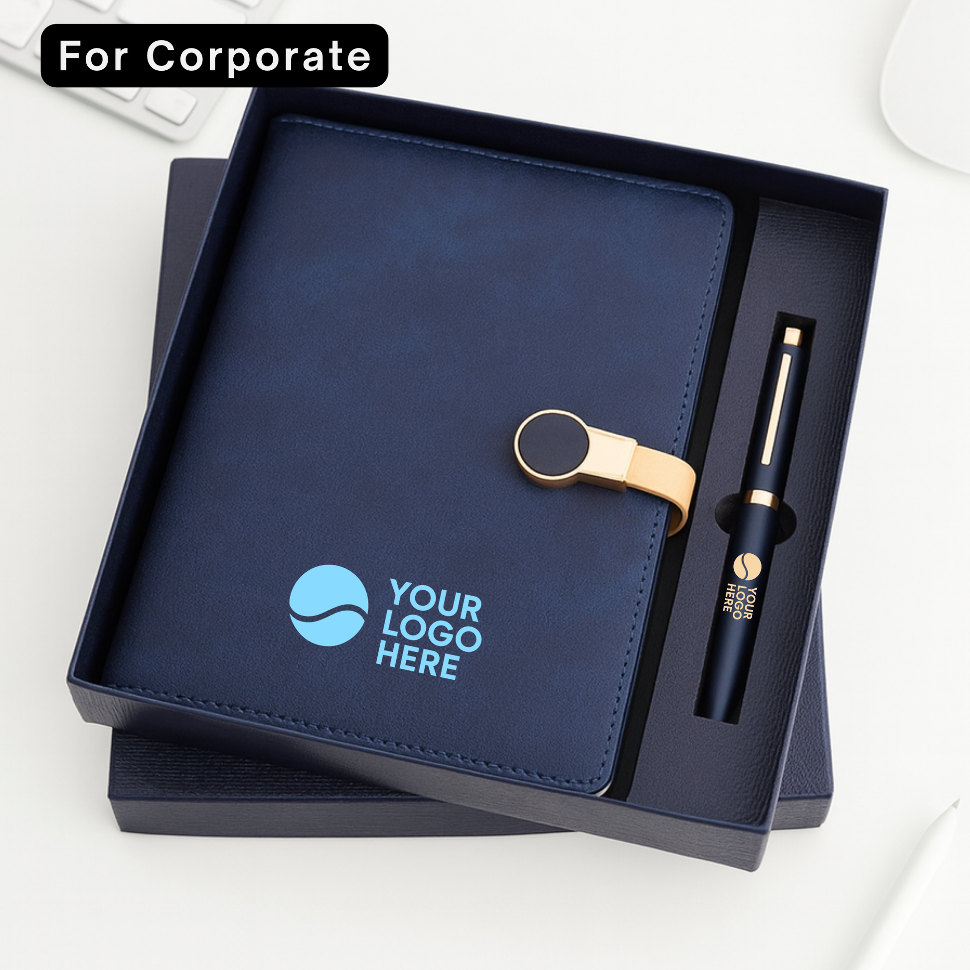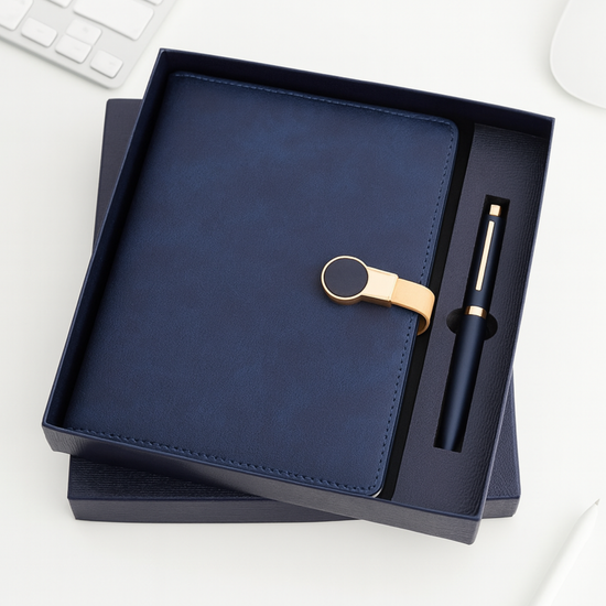 Make a sophisticated statement with "The Professional’s Pick" Gift Set, the perfect balance of executive luxury and thoughtful gifting. Available in rich Green and deep Blue, this set features a premium A5 diary with a unique gold-ring magnetic strap and a matching metal pen. Whether you are curating premium corporate hampers or looking for an elegant return gift that guests will actually use, this ready-to-gift box delivers high perceived value and lasting utility.