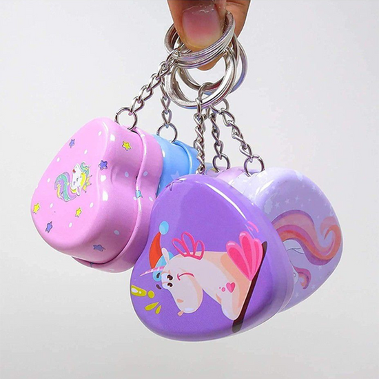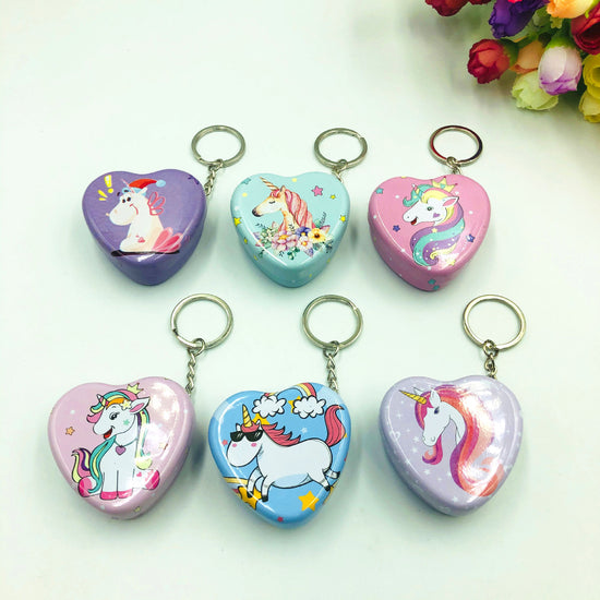 Package Includes: 1 x Unicorn Heart Mini Tin Box Keychain