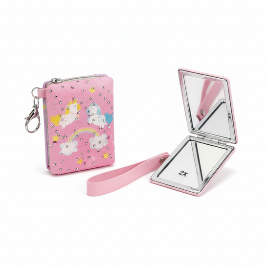 Add a dash of magic to your everyday routine with this Unicorn YoYo Dual Side Compact Mirror. Stylish, portable, and practical, this compact mirror combines cuteness with functionality—making touch-ups on the go easier than ever. With its 2x magnification, it ensures you never miss a detail while keeping a fun unicorn vibe in your bag. A perfect blend of charm and utility for kids, teens, and adults alike.