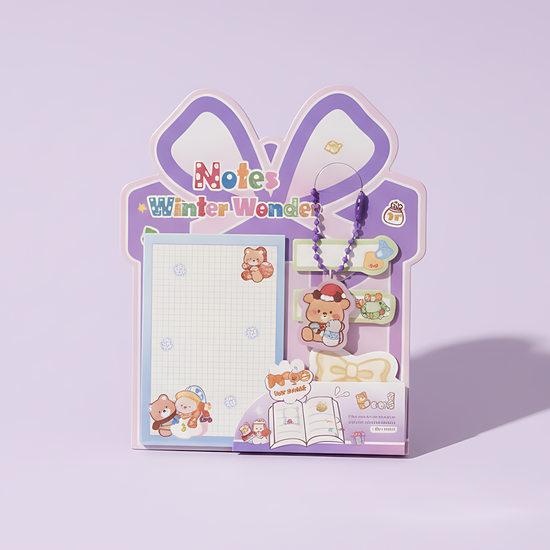 This adorable 3-in-1 stationery pack includes cute sticky notes, memo sheets, and a matching charm — all wrapped in cheerful holiday-themed packaging. Each set features charming winter characters, cozy colors, and cute illustrations that make writing little notes or reminders an absolute joy.