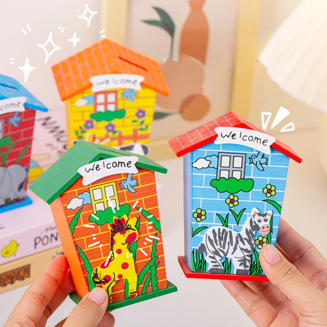 - Package Includes: 1 x Wooden Animal Theme House Piggy Bank