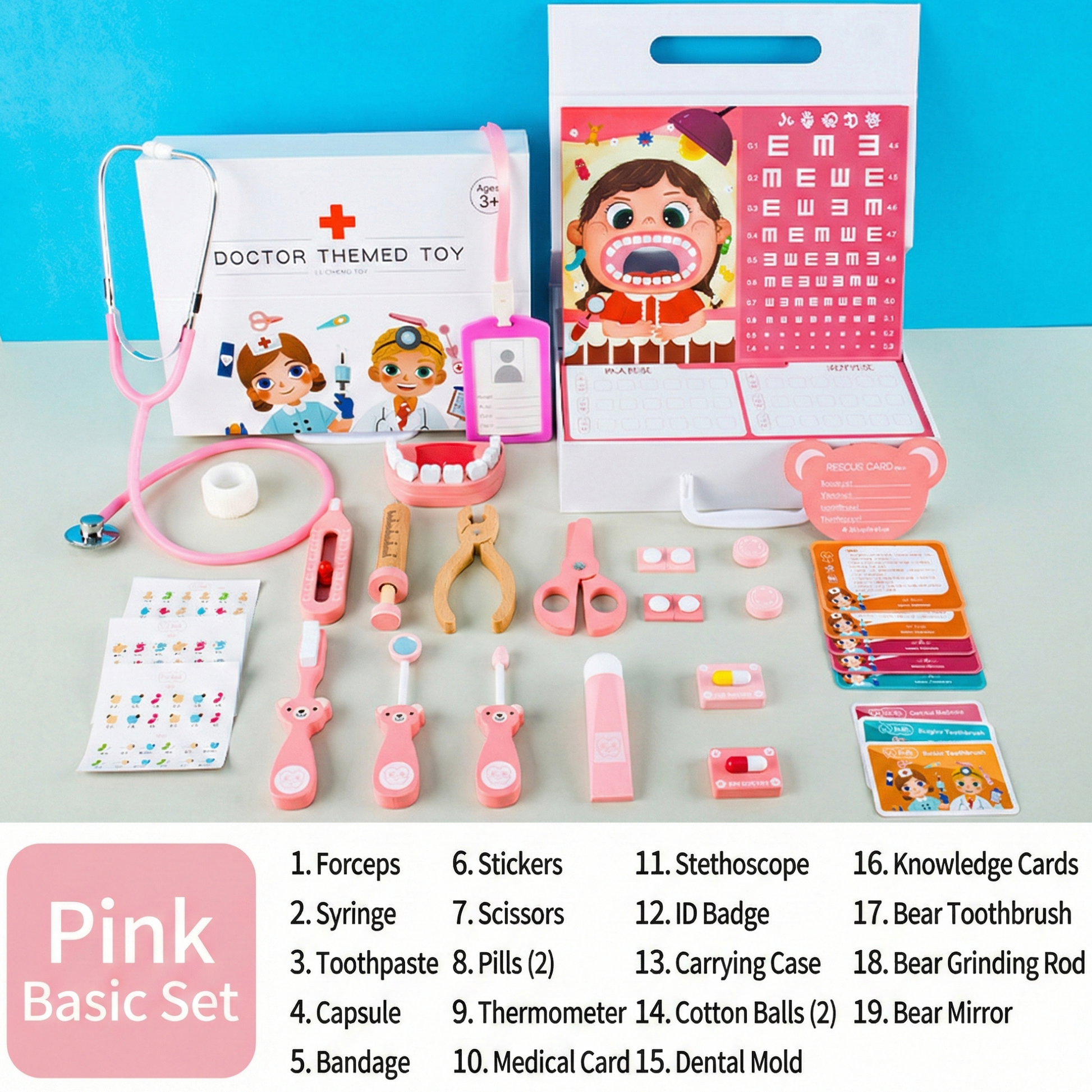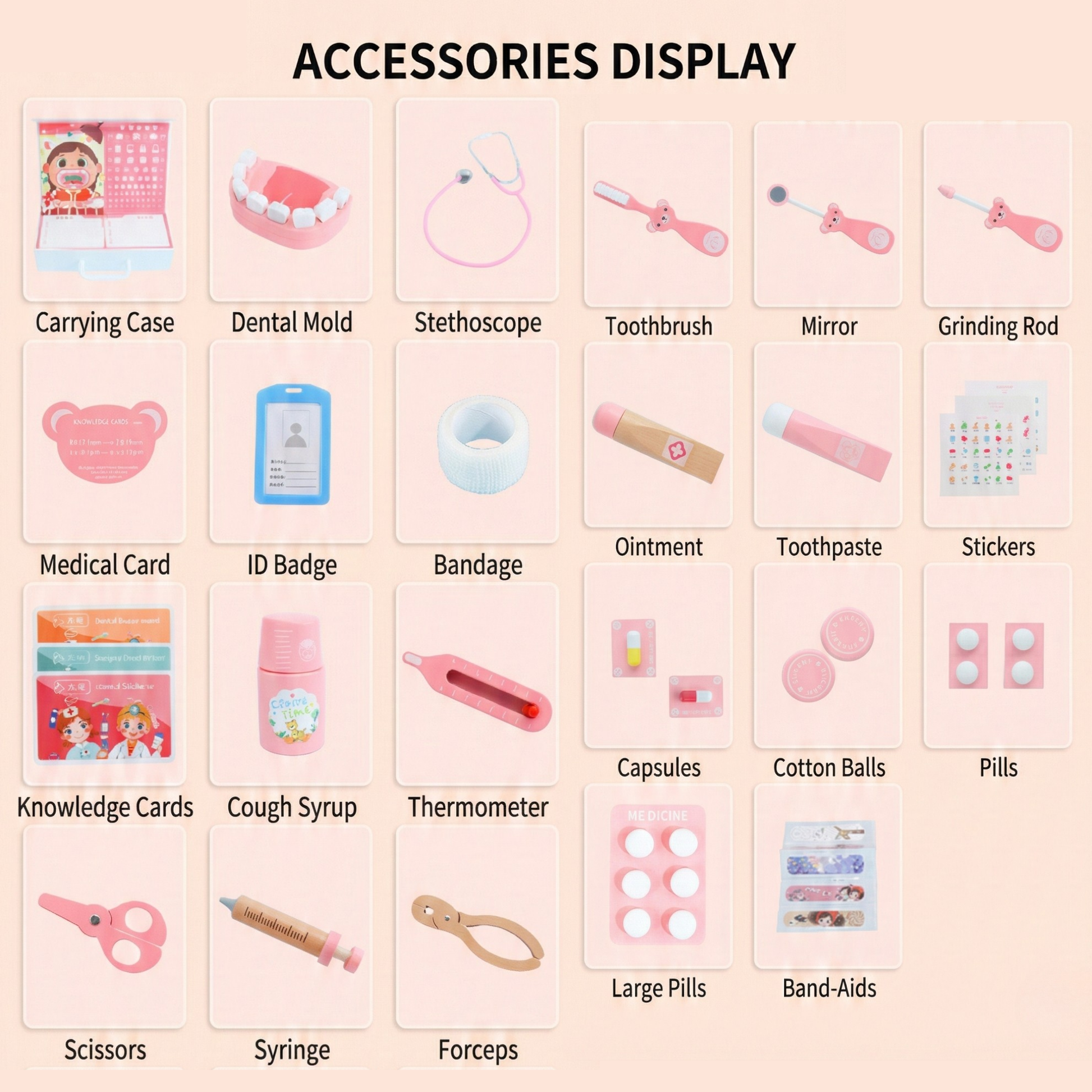 Wooden Doctor & Dentist Medical Play Set (Pink Edition)