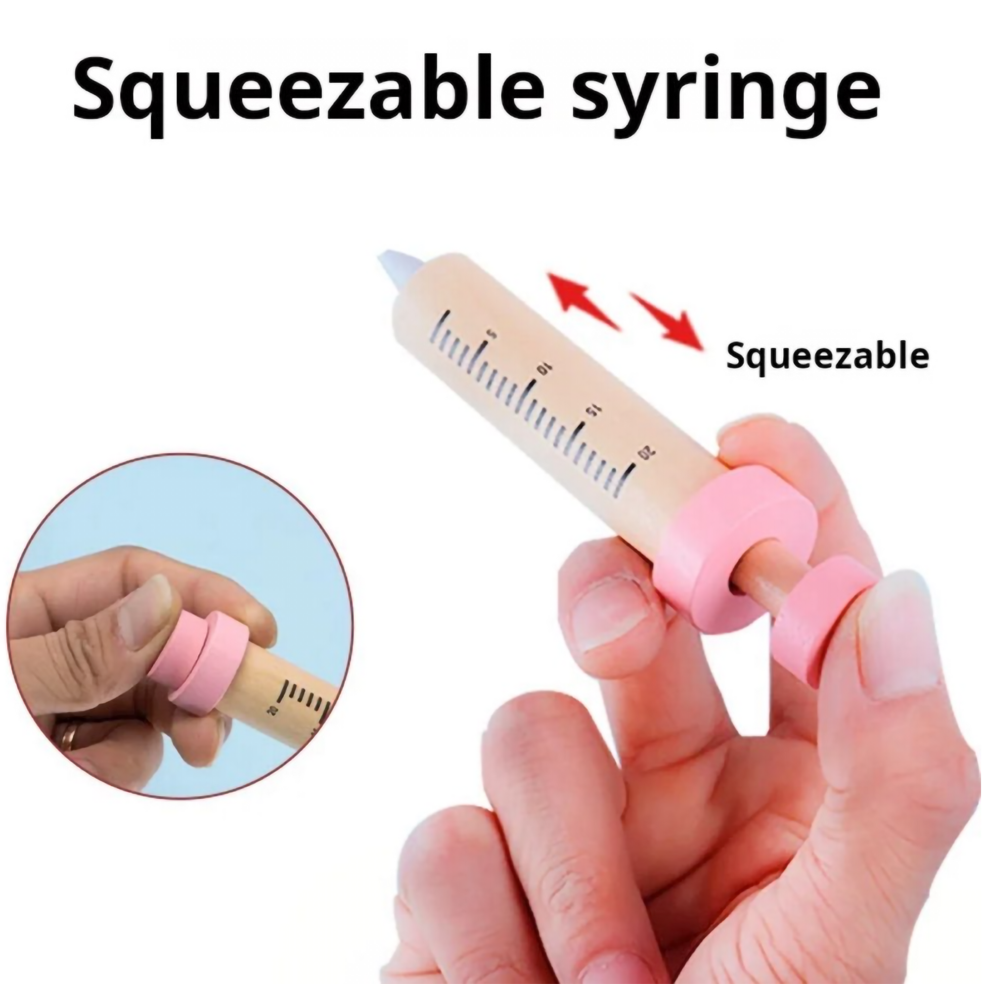 🩺 Realistic Medical Tools: Includes a working stethoscope (that kids can wear), a pushable syringe for "injections," a thermometer with sliding temperature, and wooden scissors/pliers for realistic play.