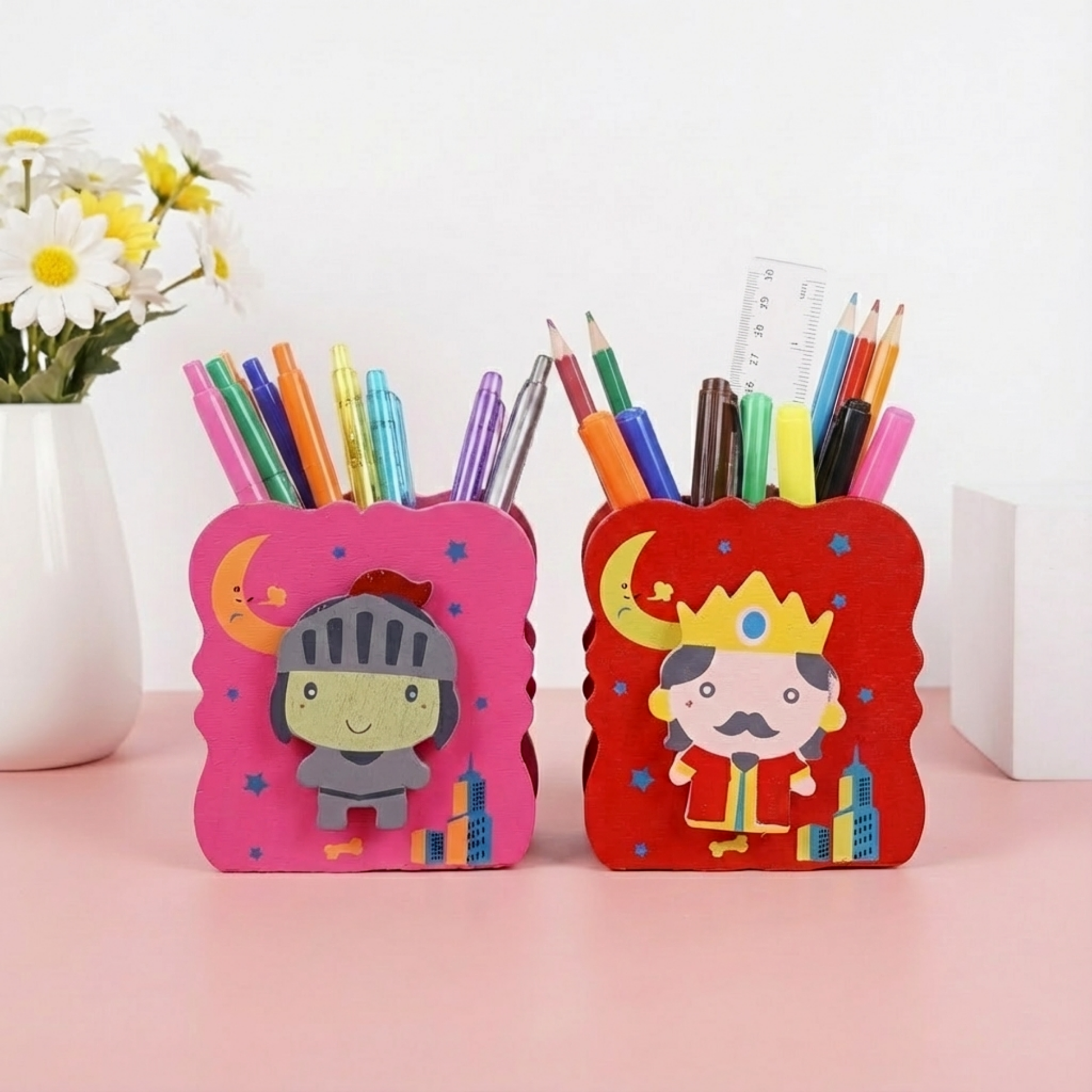 Turn your desk into a magical kingdom with these Creative Wooden Fairytale Pen Holders! Featuring enchanting 3D wooden cutouts of knights, dragons, and castles set against a dreamy backdrop of moons and stars, these organizers are perfect for sparking imagination. Sturdy and colorful, they provide a whimsical way for kids to keep their stationery neat and tidy.